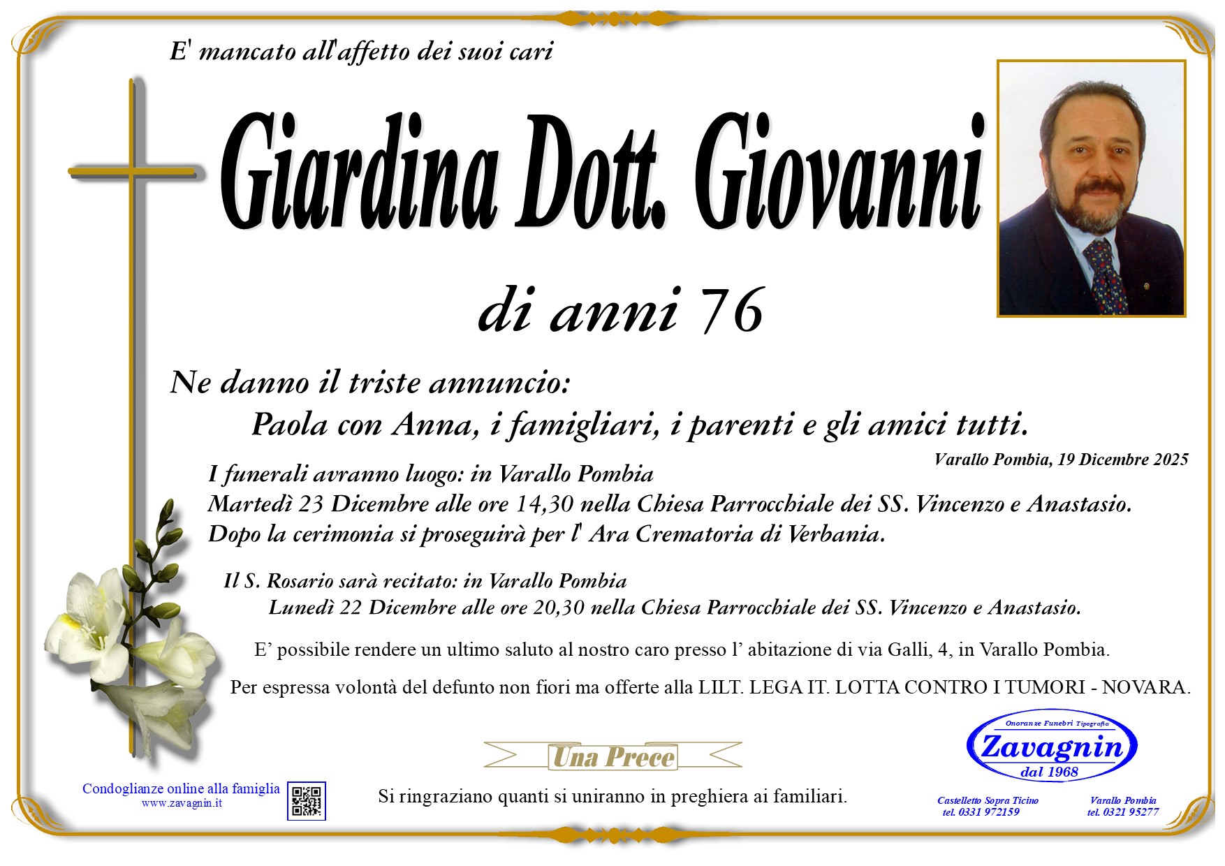 Home page \ I necrologi \ GIOVANNI GIARDINA