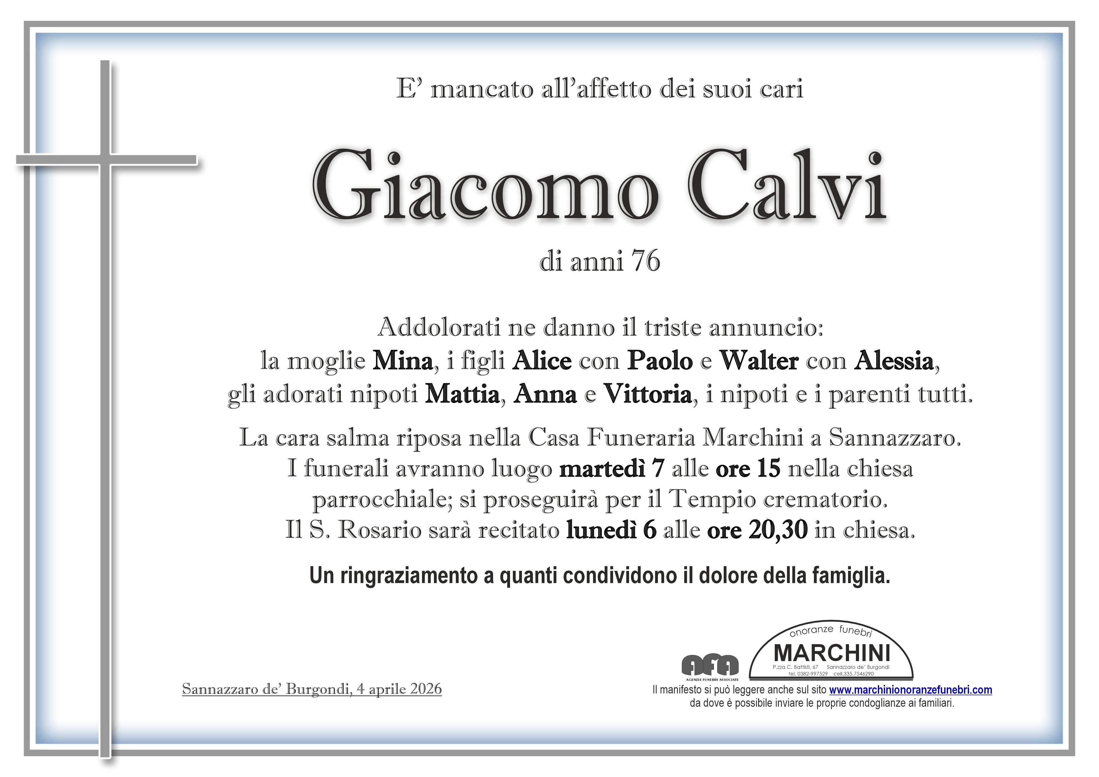 Home page \ I necrologi \ GIACOMO CALVI
