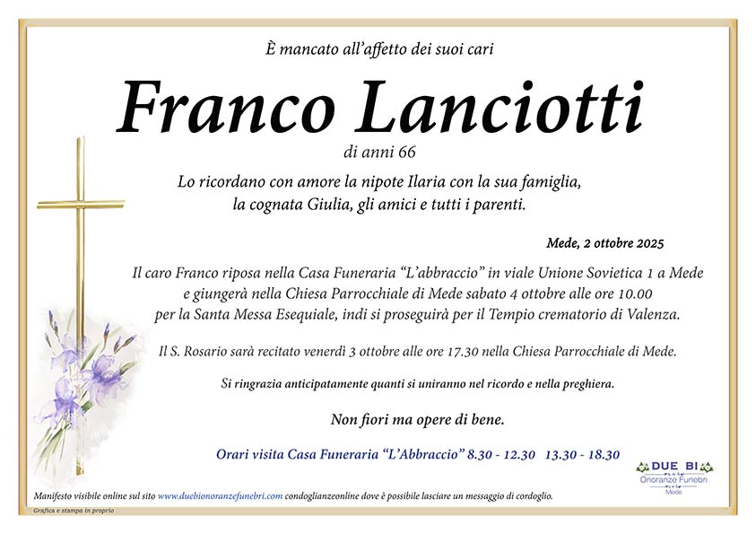 Gli amici della classe 1959 sono vicini alla famiglia di Franco nella preghiera. Ciao Franco, riposa in pace!