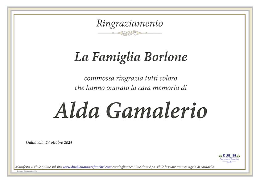 Home page \ I necrologi \ Alda Valentina Gamalerio