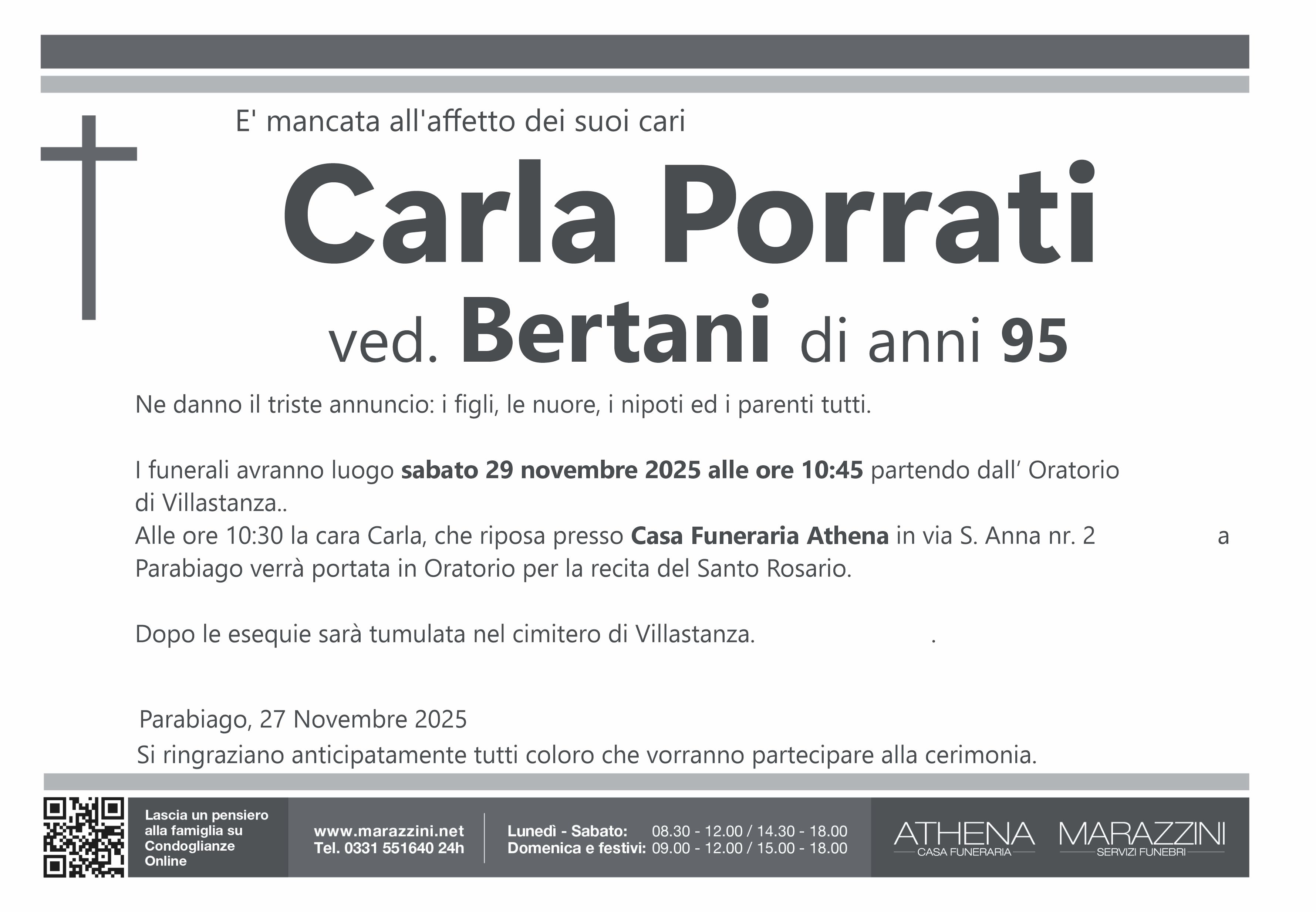 Grazie Carla per la tua vita ricca di tanto servizio, umile e concreto. A voi figli e a tutti i familiari le nostre più sentite condoglianze. Katia e Sergio Nebuloni.