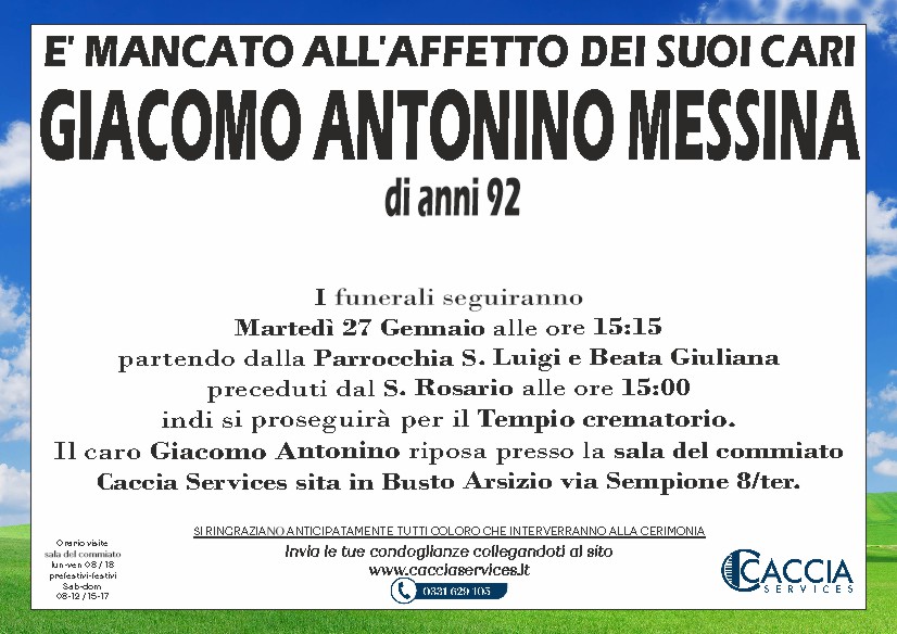 Home page \ I necrologi \ GIACOMO ANTONINO MESSINA