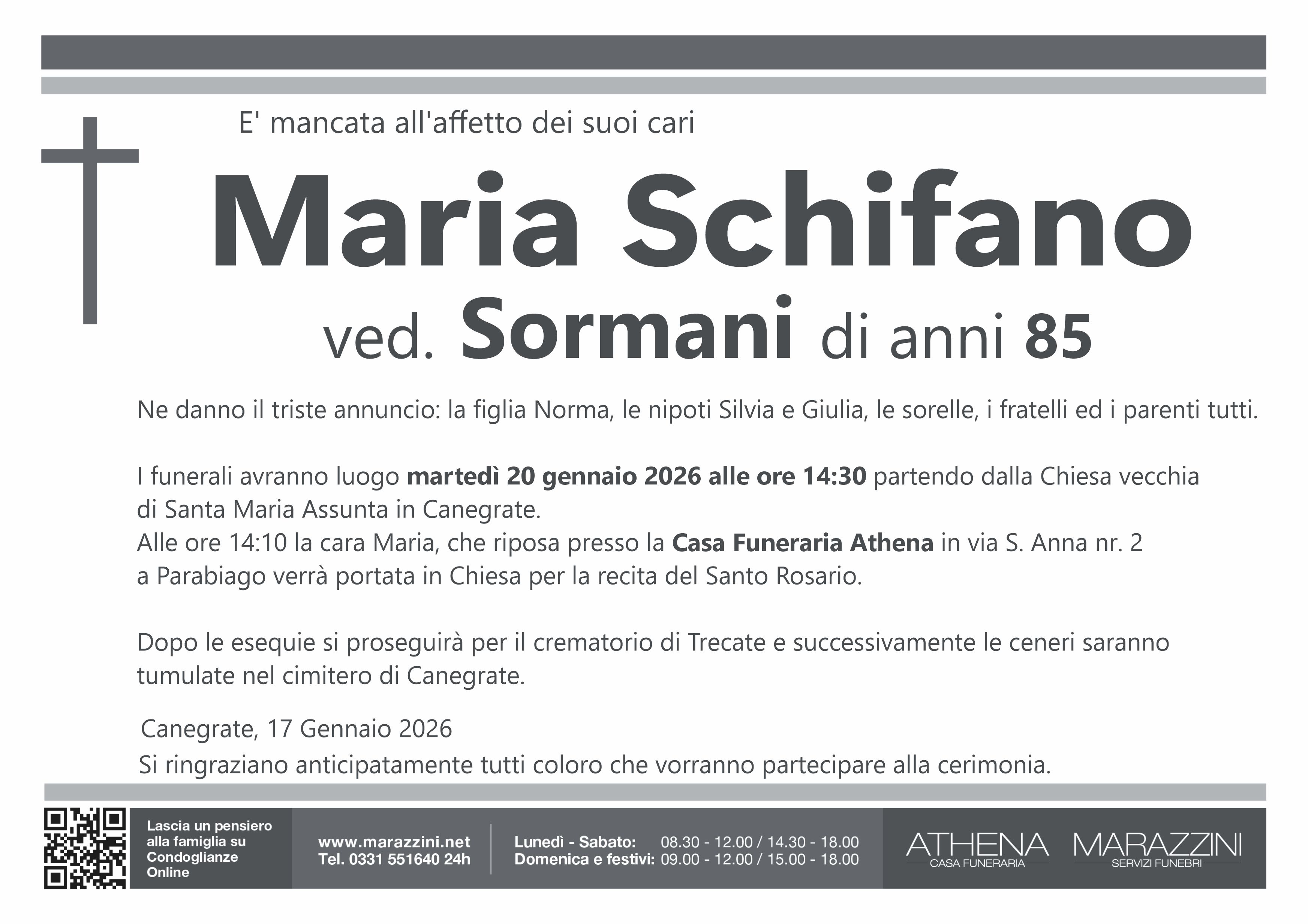 Home page \ I necrologi \ MARIA SCHIFANO