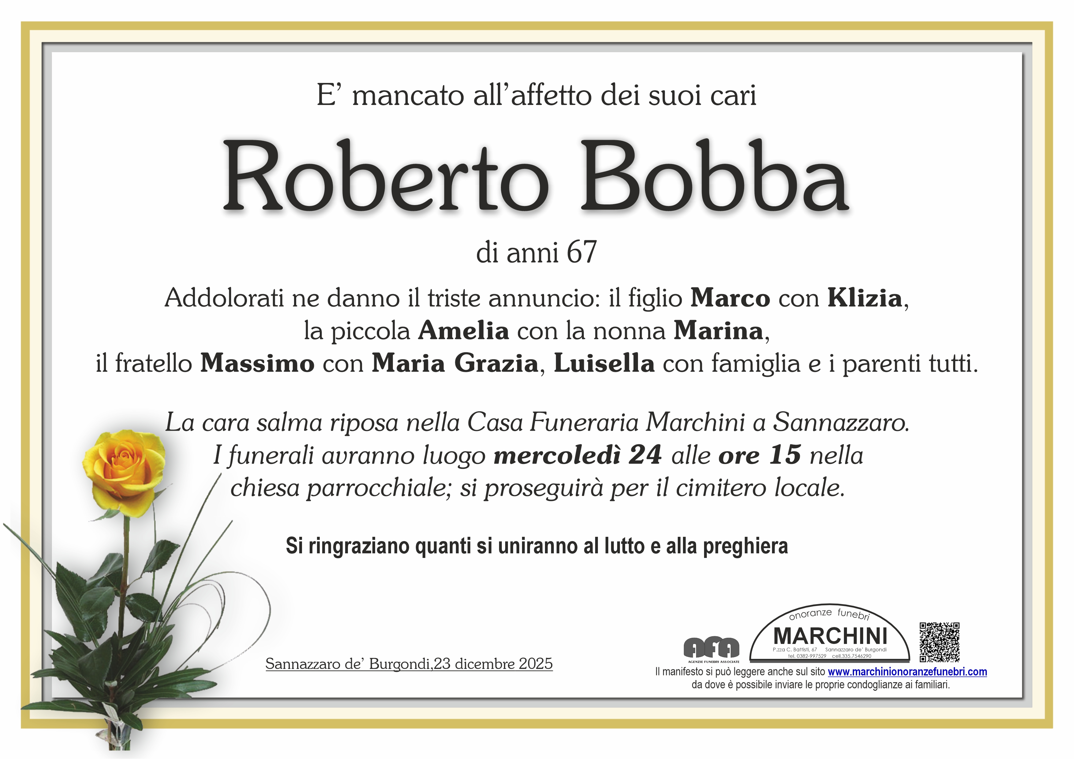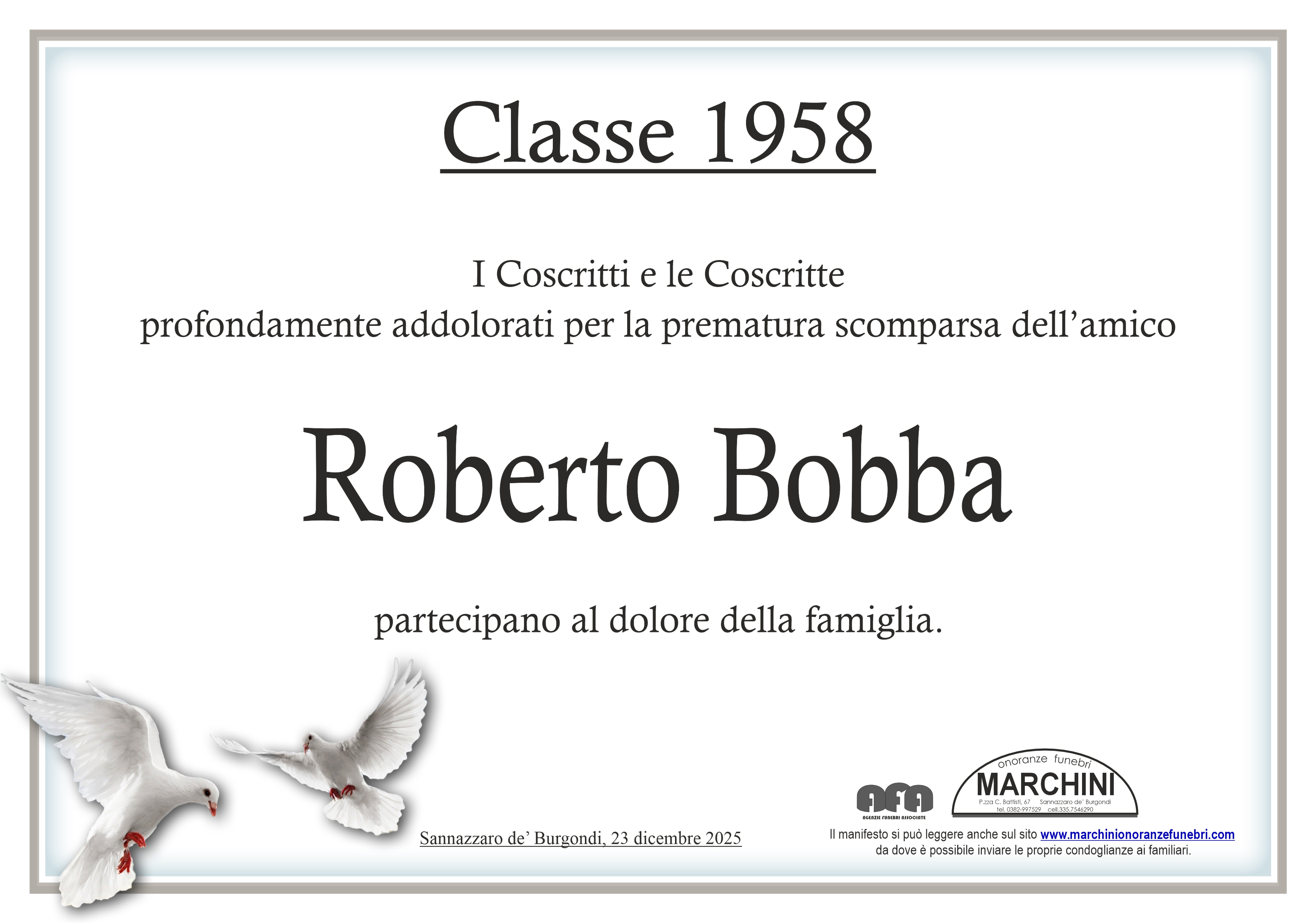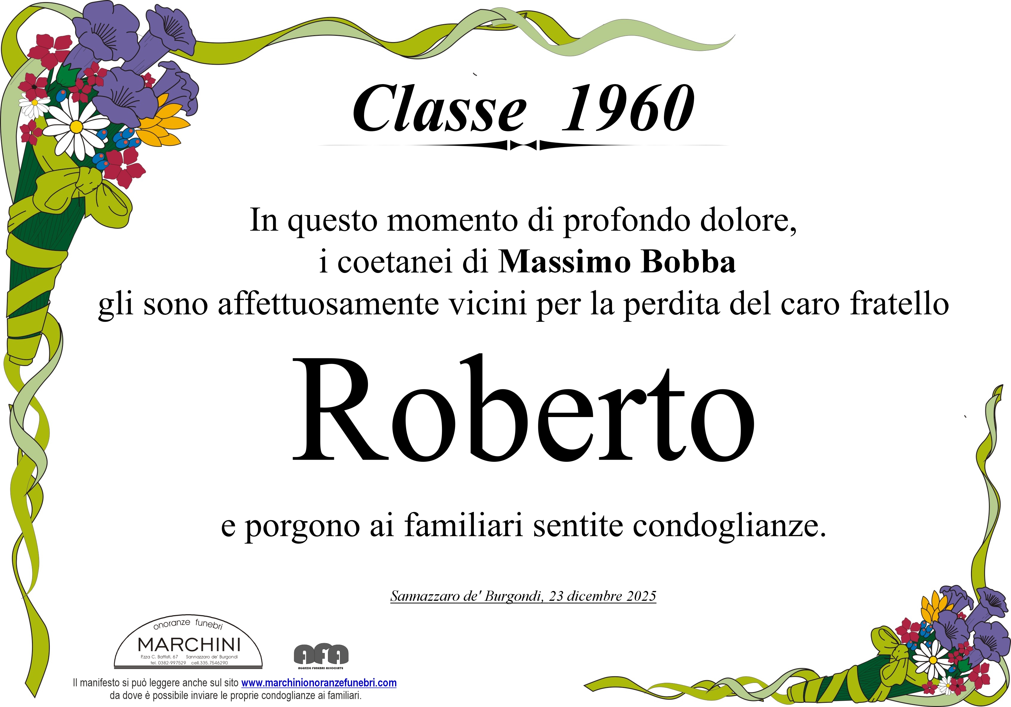 Con profondo dispiacere per la scomparsa di Roberto, inviamo le più sentite condoglianze. Marina Bisio e famiglia
