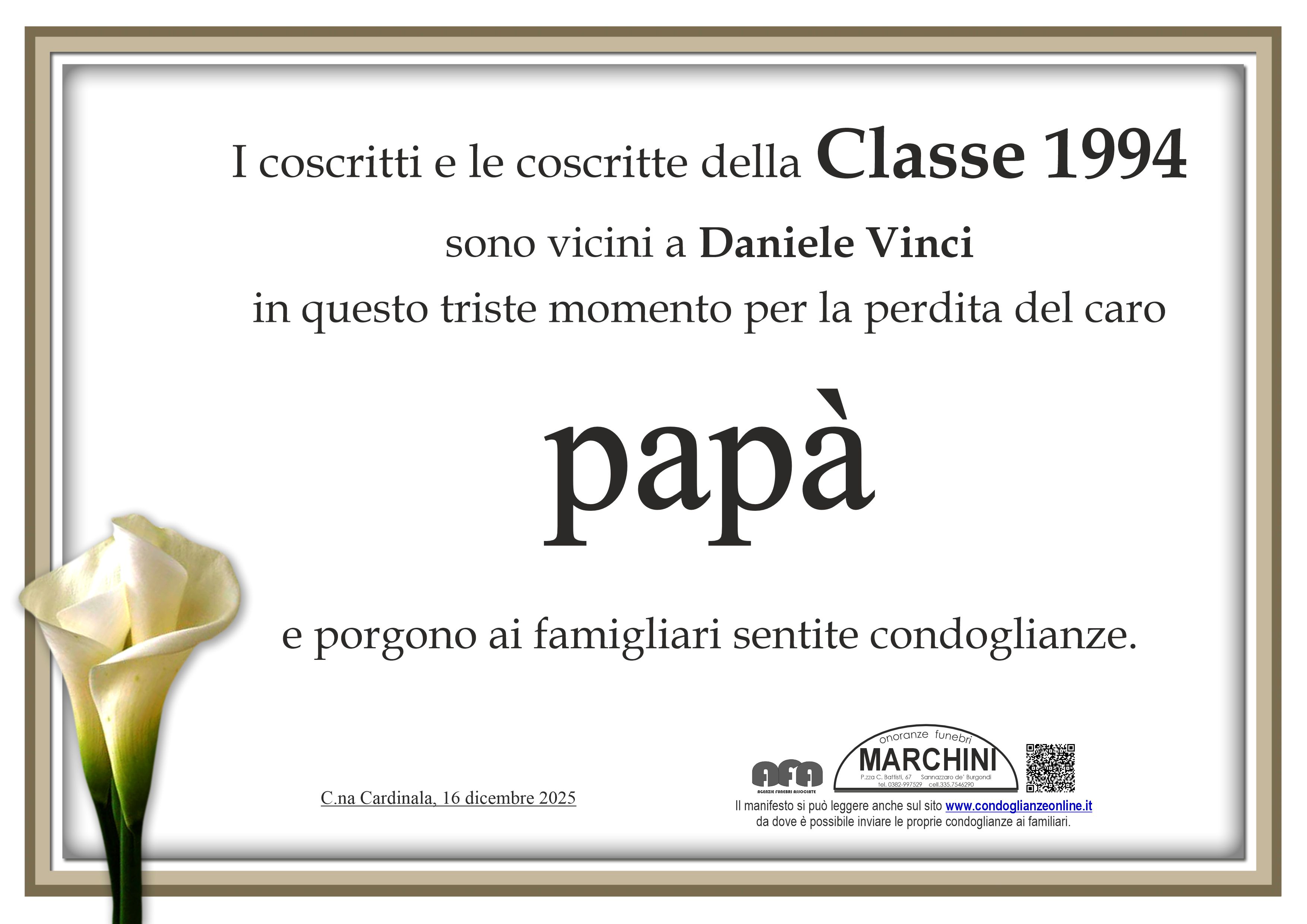 Le nostre piu' sincere e sentite condoglianze Fam PAPA