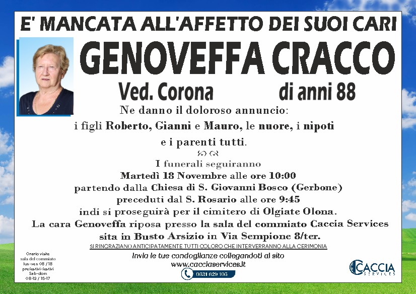 Home page \ I necrologi \ GENOVEFFA CRACCO