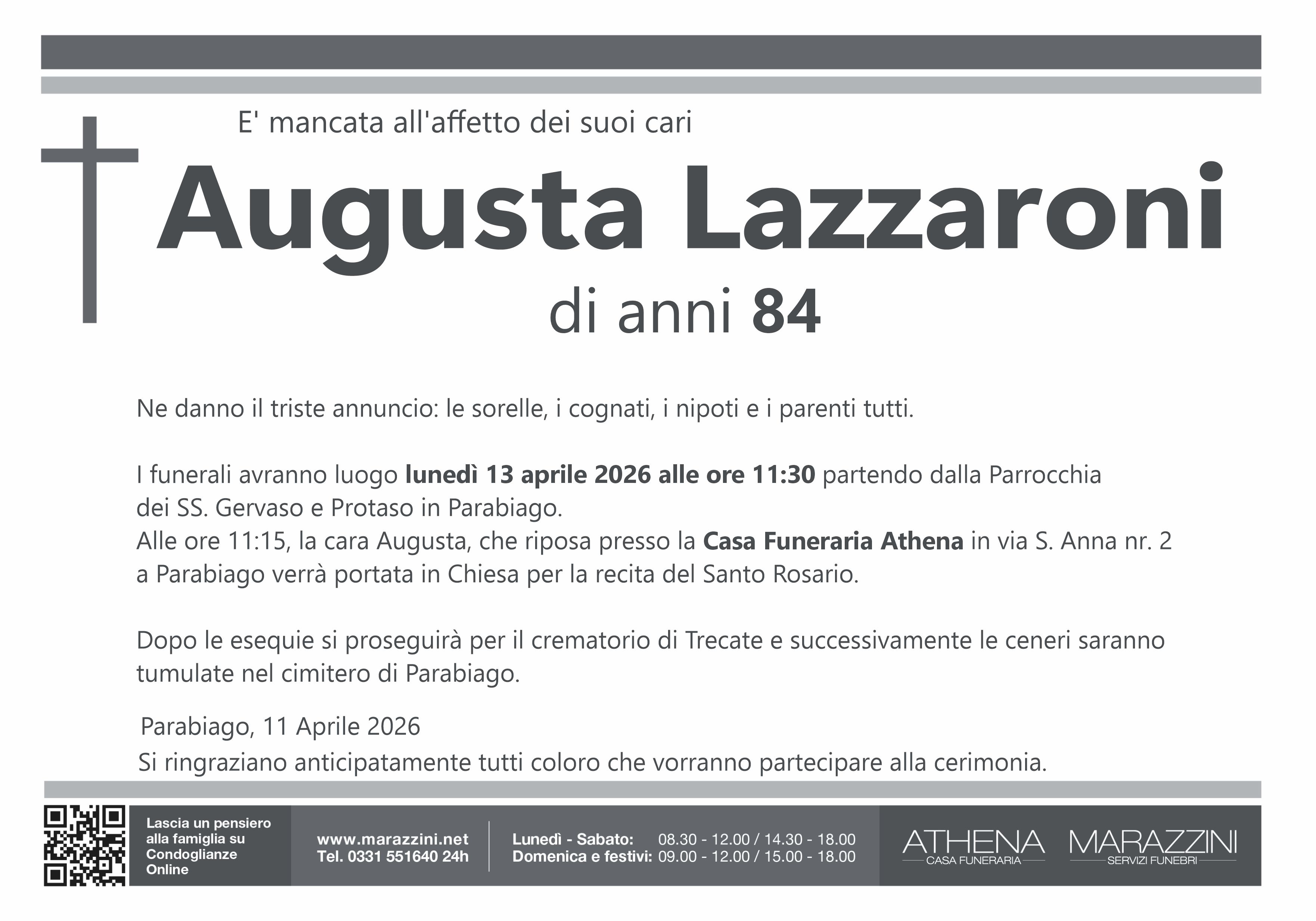 Home page \ I necrologi \ AUGUSTA LAZZARONI