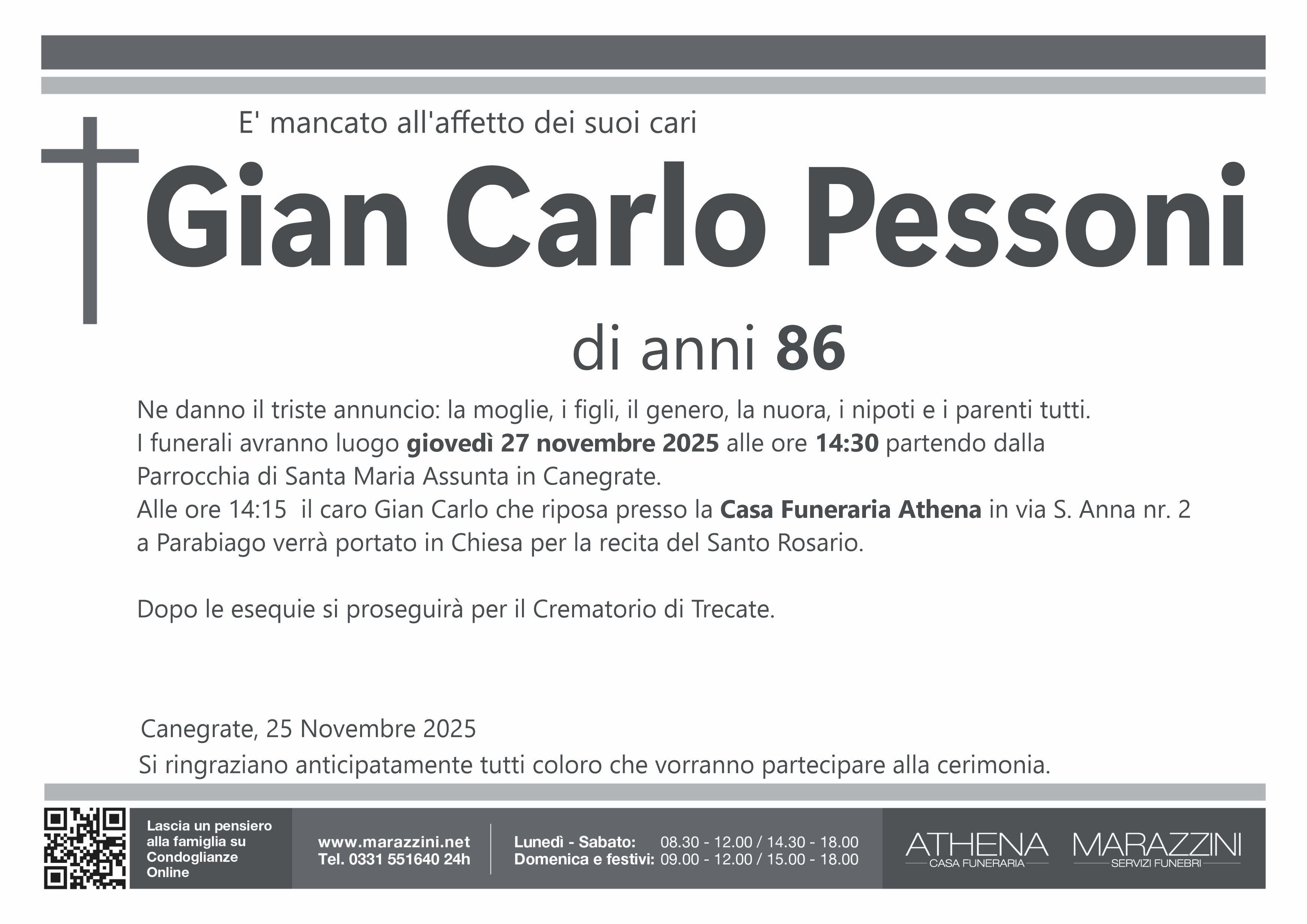 Home page \ I necrologi \ GIAN CARLO PESSONI