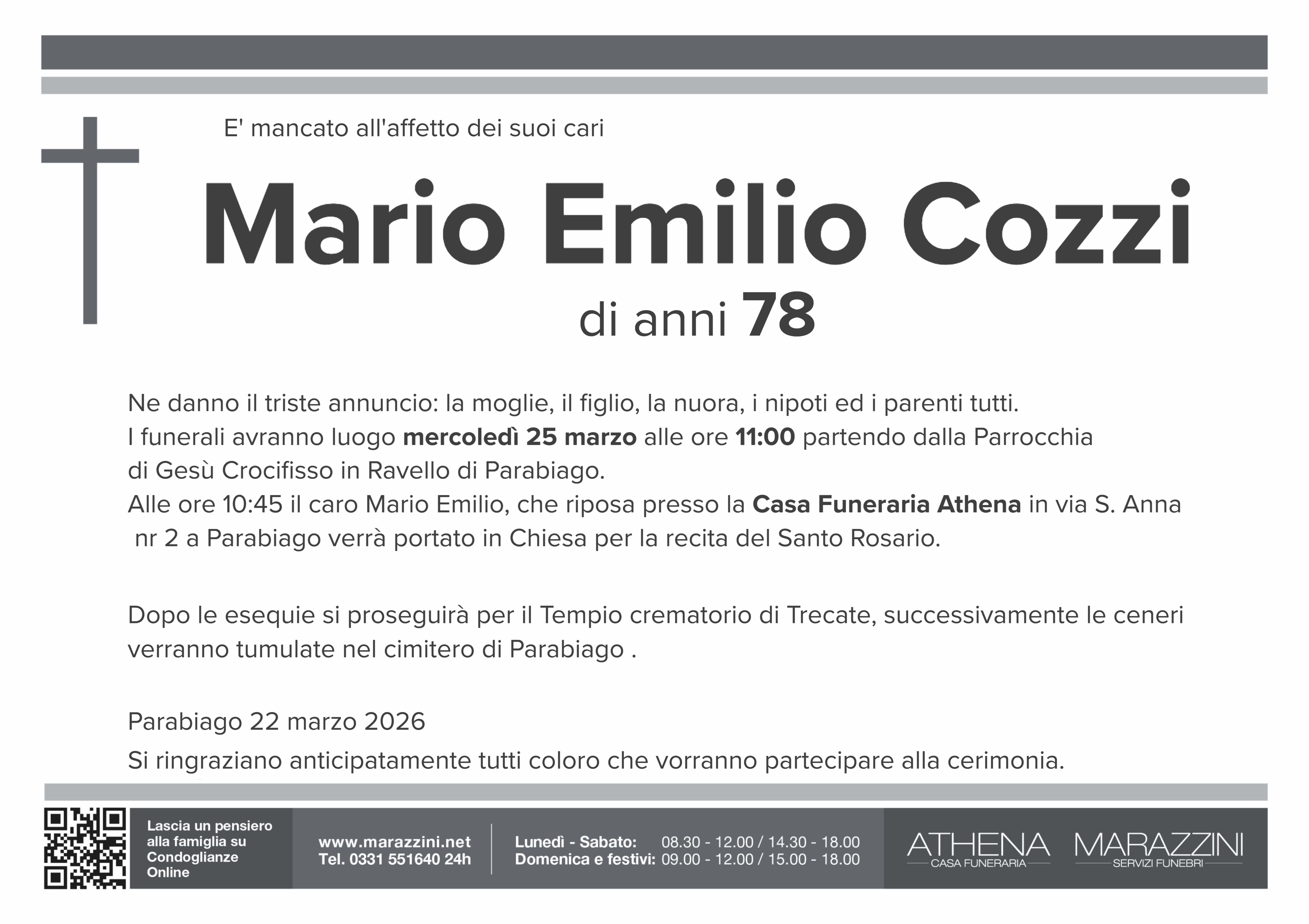 Home page \ I necrologi \ MARIO EMILIO COZZI