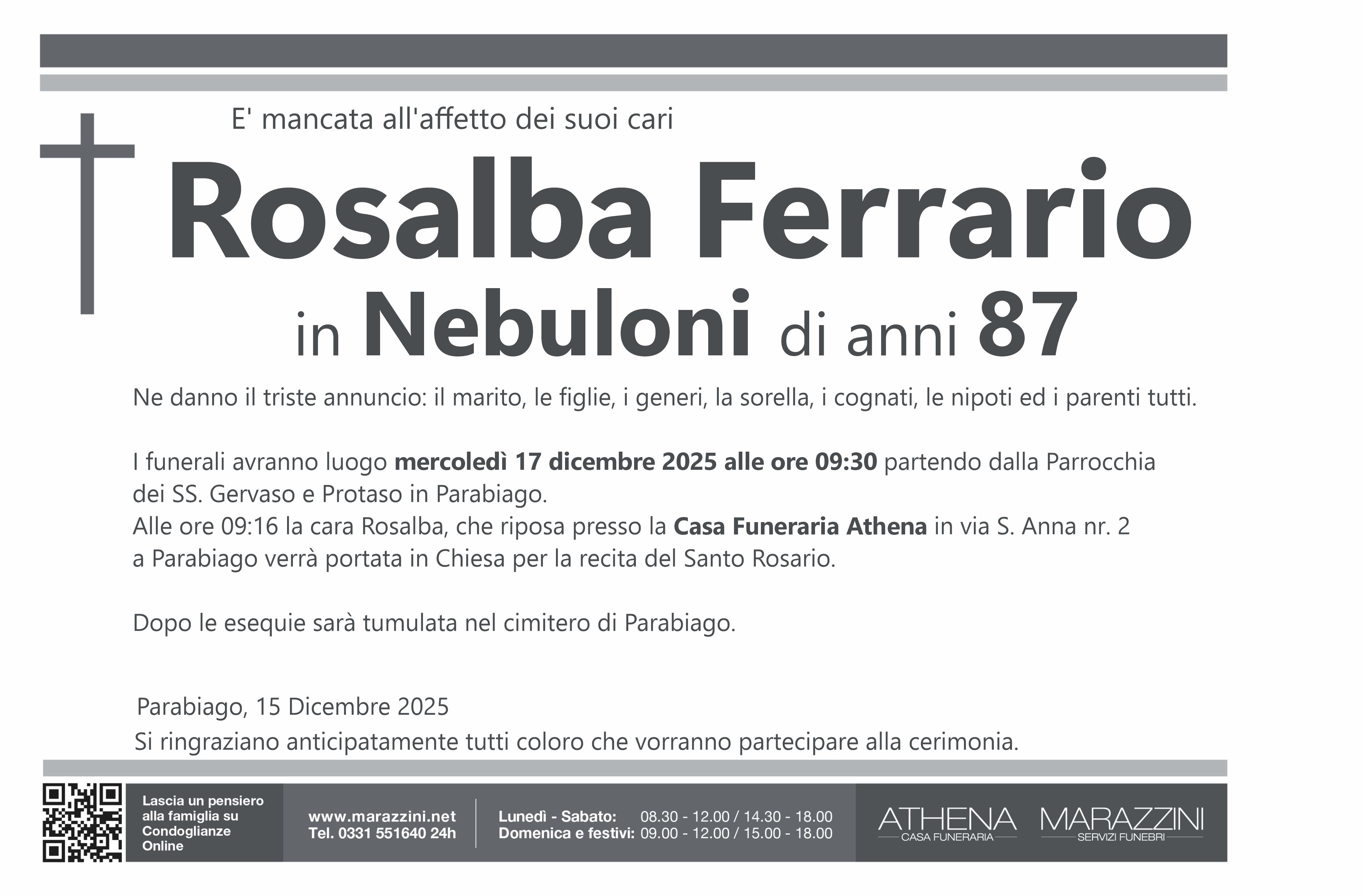 Home page \ I necrologi \ ROSALBA FERRARIO