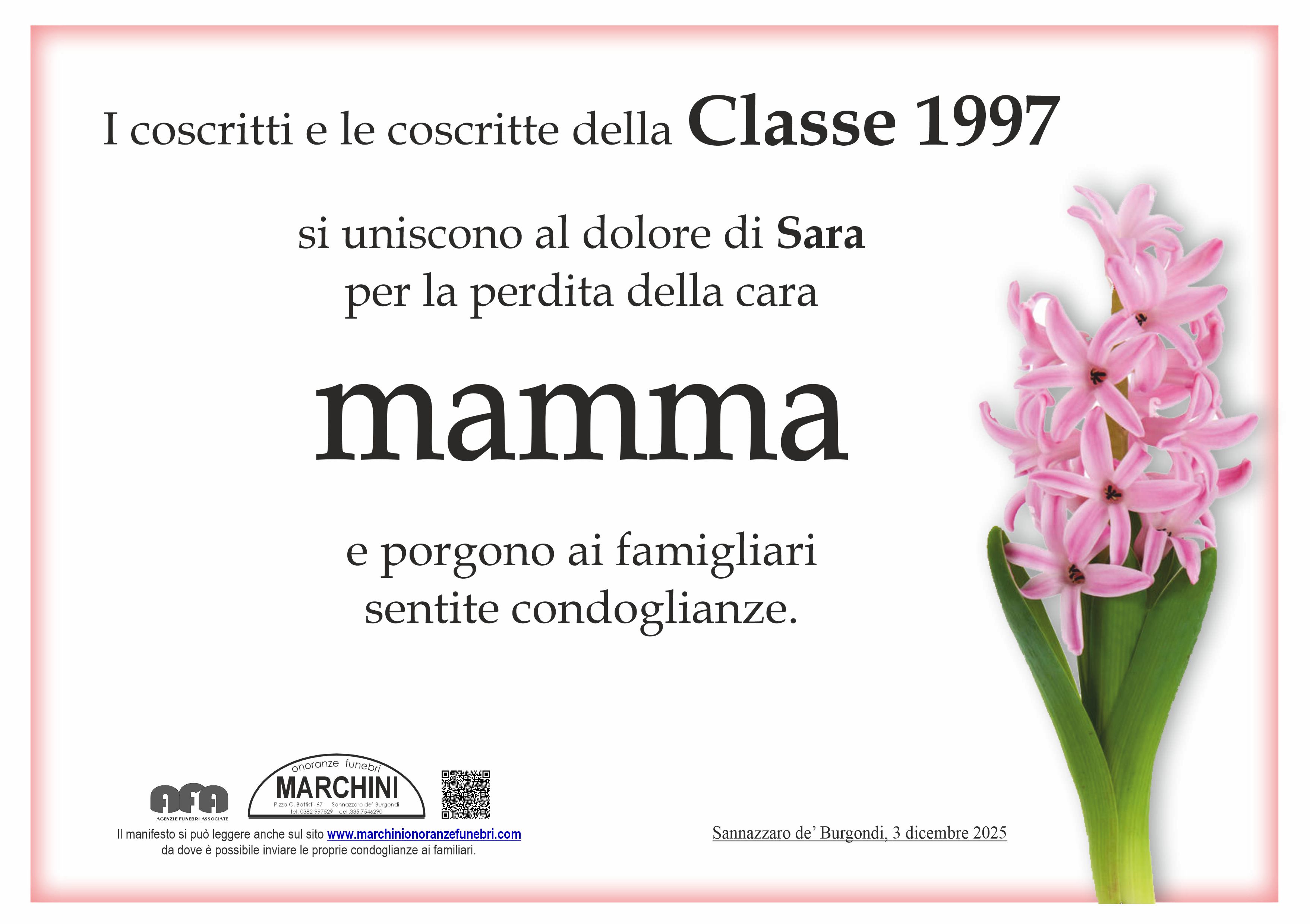 Impossibilitata di farlo personalmente porgo le mie piú sentite condoglianze per la perdita della cara Rosanna Un abbraccio