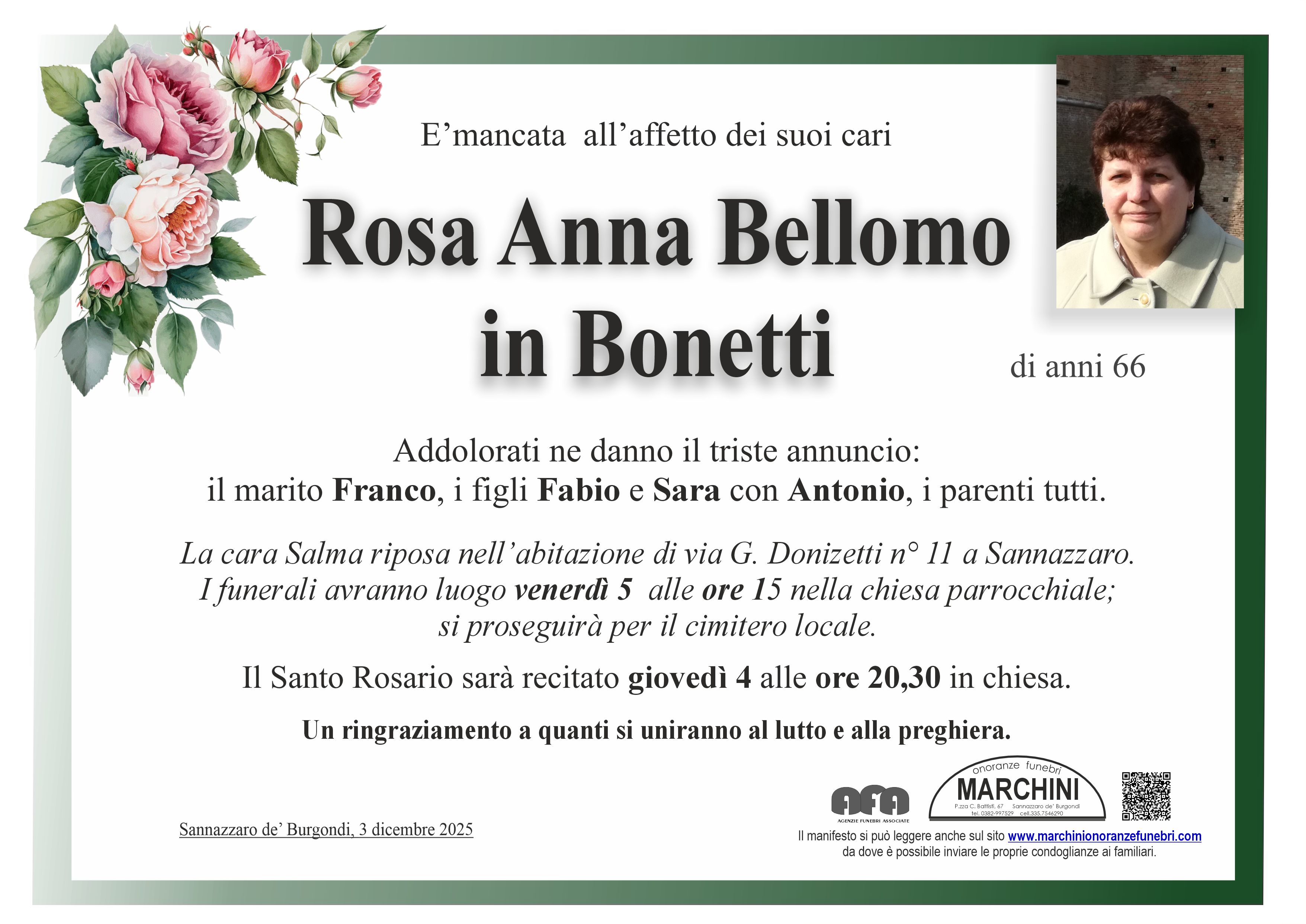 Home page \ I necrologi \ ROSA ANNA BELLOMO