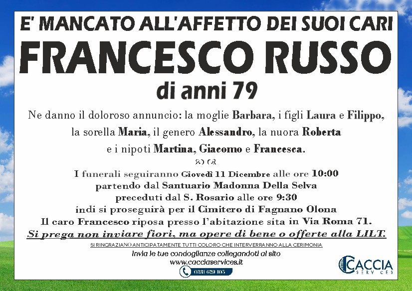 Home page \ I necrologi \ FRANCESCO RUSSO