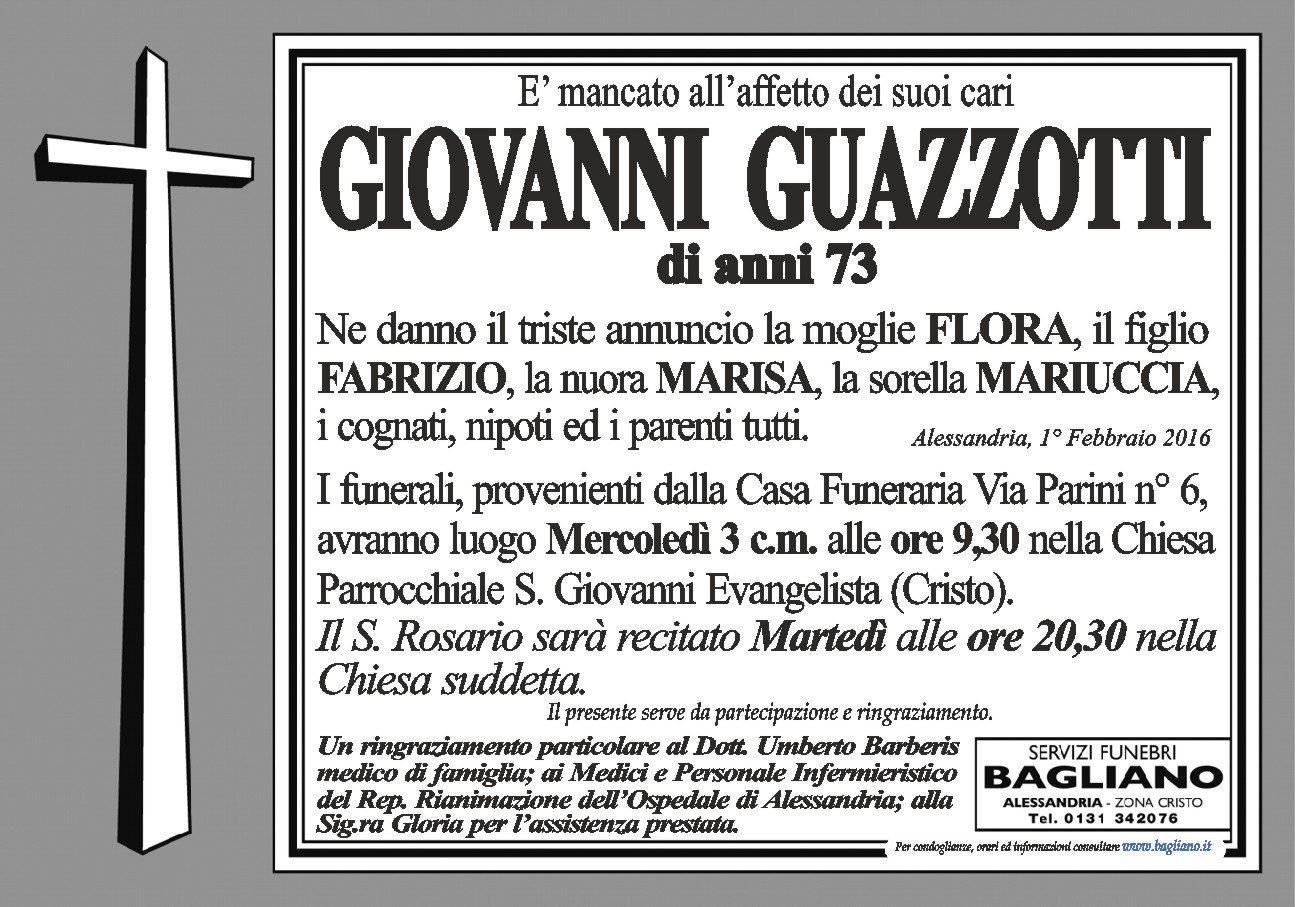 Home page \ I necrologi \ GIOVANNI GUAZZOTTI