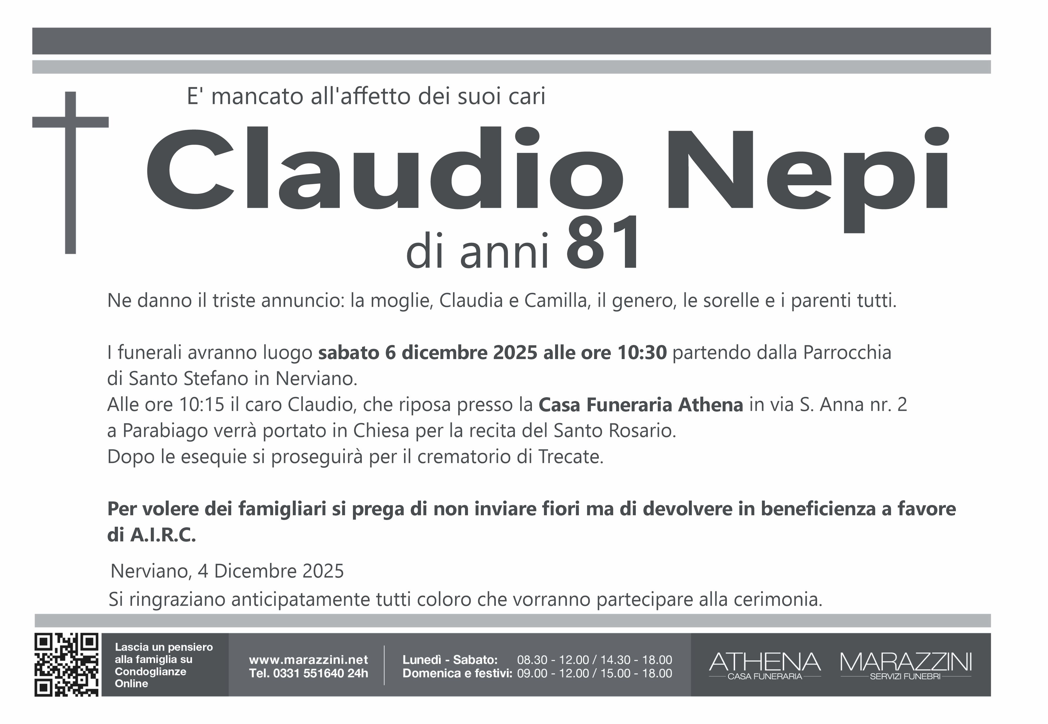 Home page \ I necrologi \ CLAUDIO NEPI