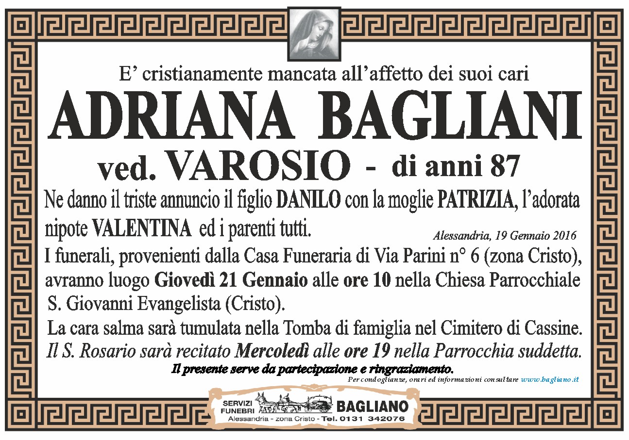 Home page \ I necrologi \ ADRIANA BAGLIANI