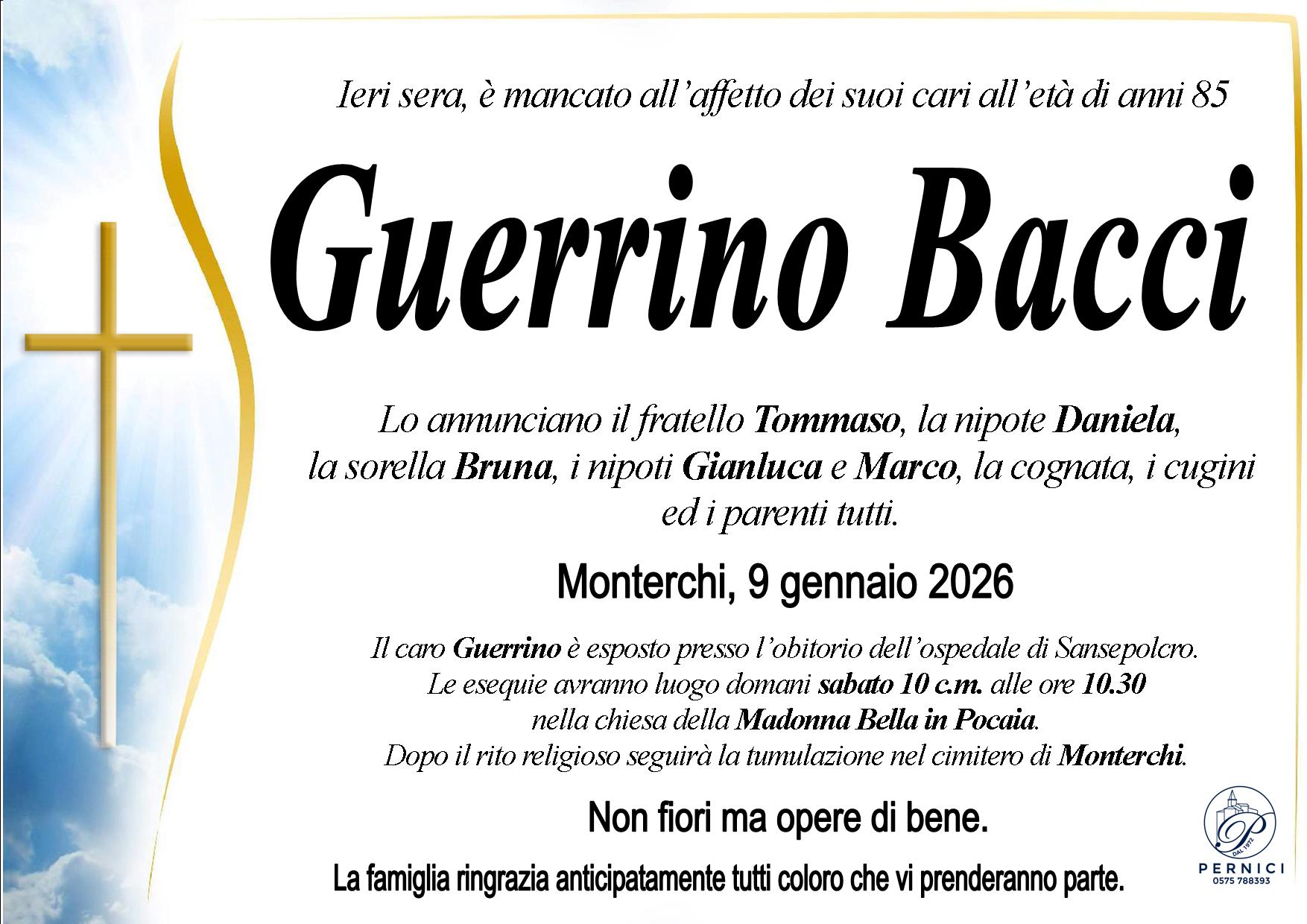 Home page \ I necrologi \ GUERRINO BACCI