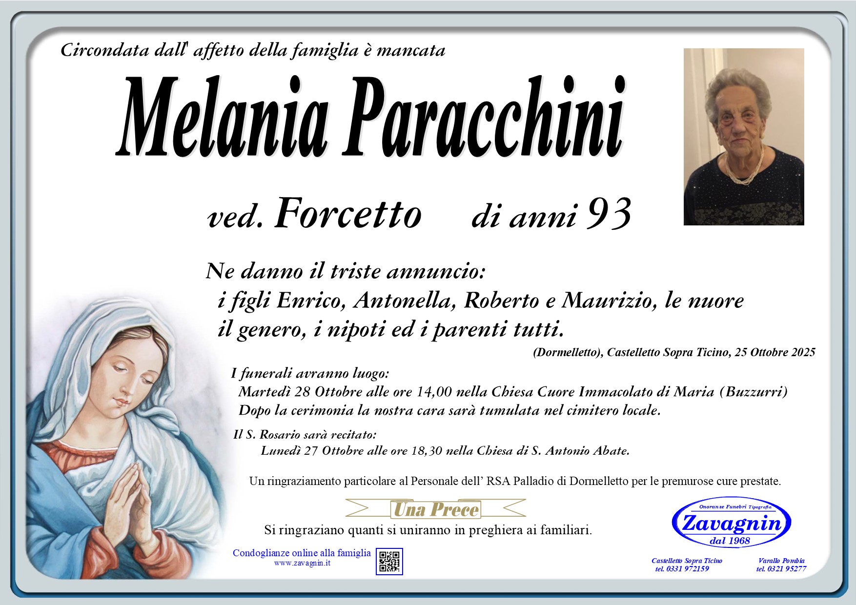Home page \ I necrologi \ MELANIA PARACCHINI