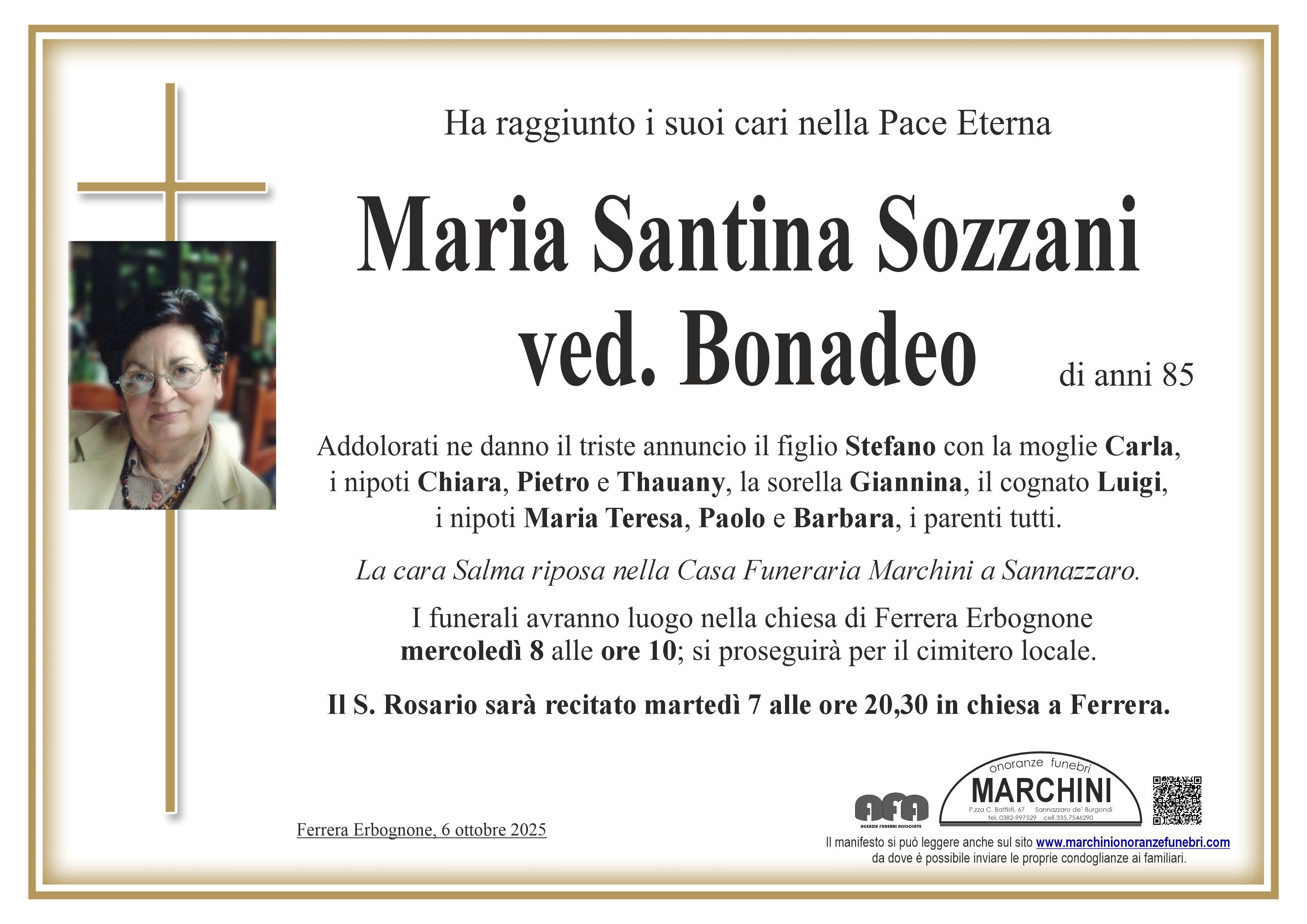 Home page \ I necrologi \ MARIA SANTINA SOZZANI