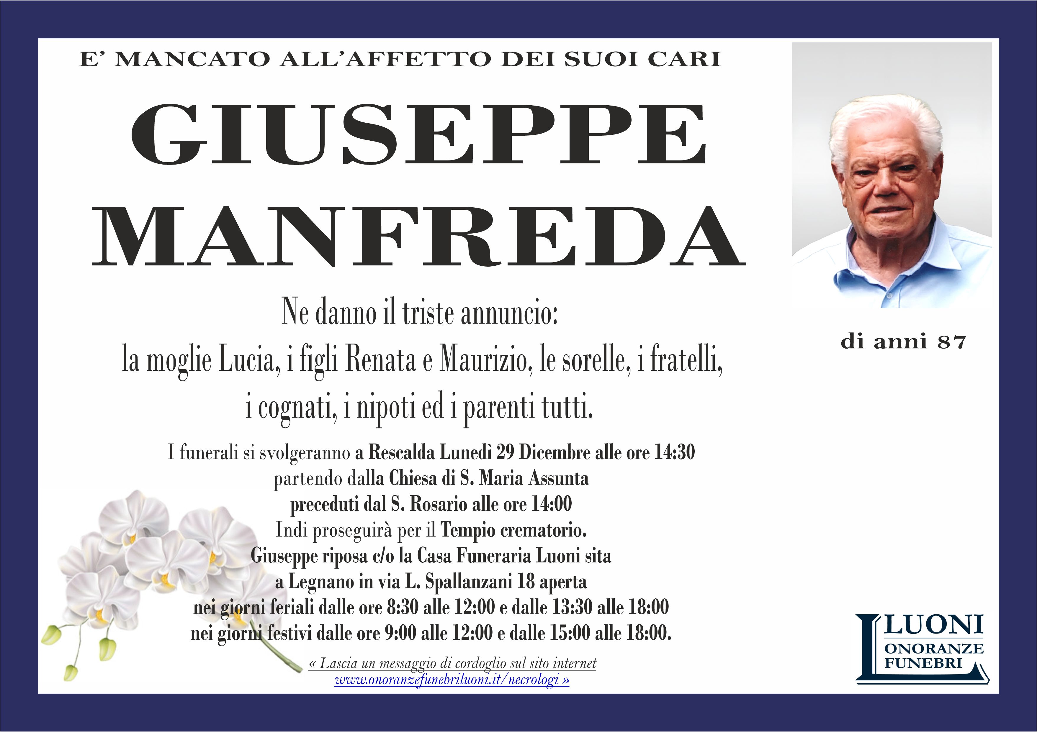 Home page \ I necrologi \ GIUSEPPE MANFREDA