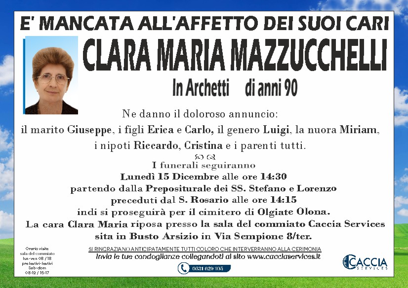 Home page \ I necrologi \ CLARA MARIA MAZZUCCHELLI