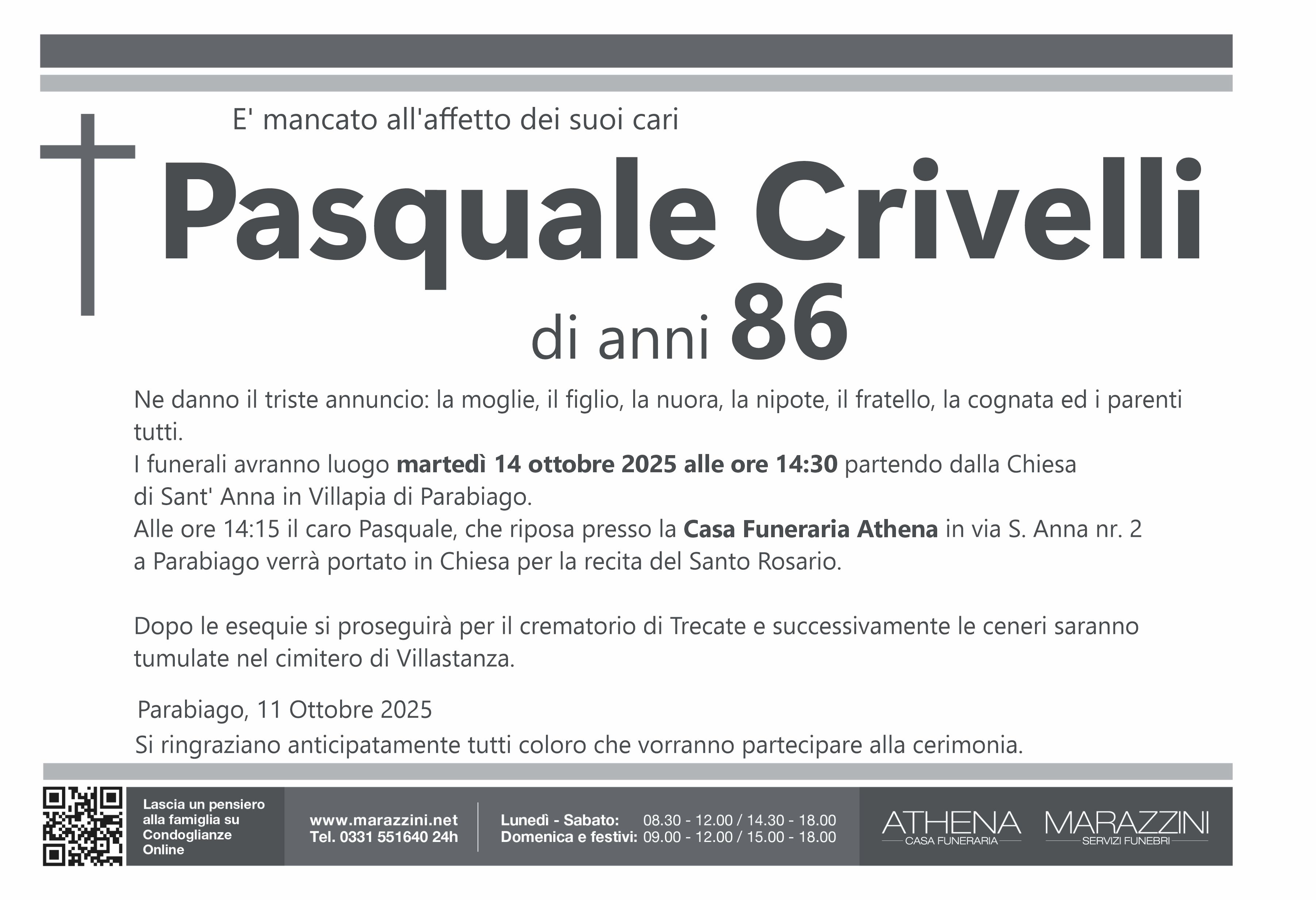 Home page \ I necrologi \ PASQUALE CRIVELLI