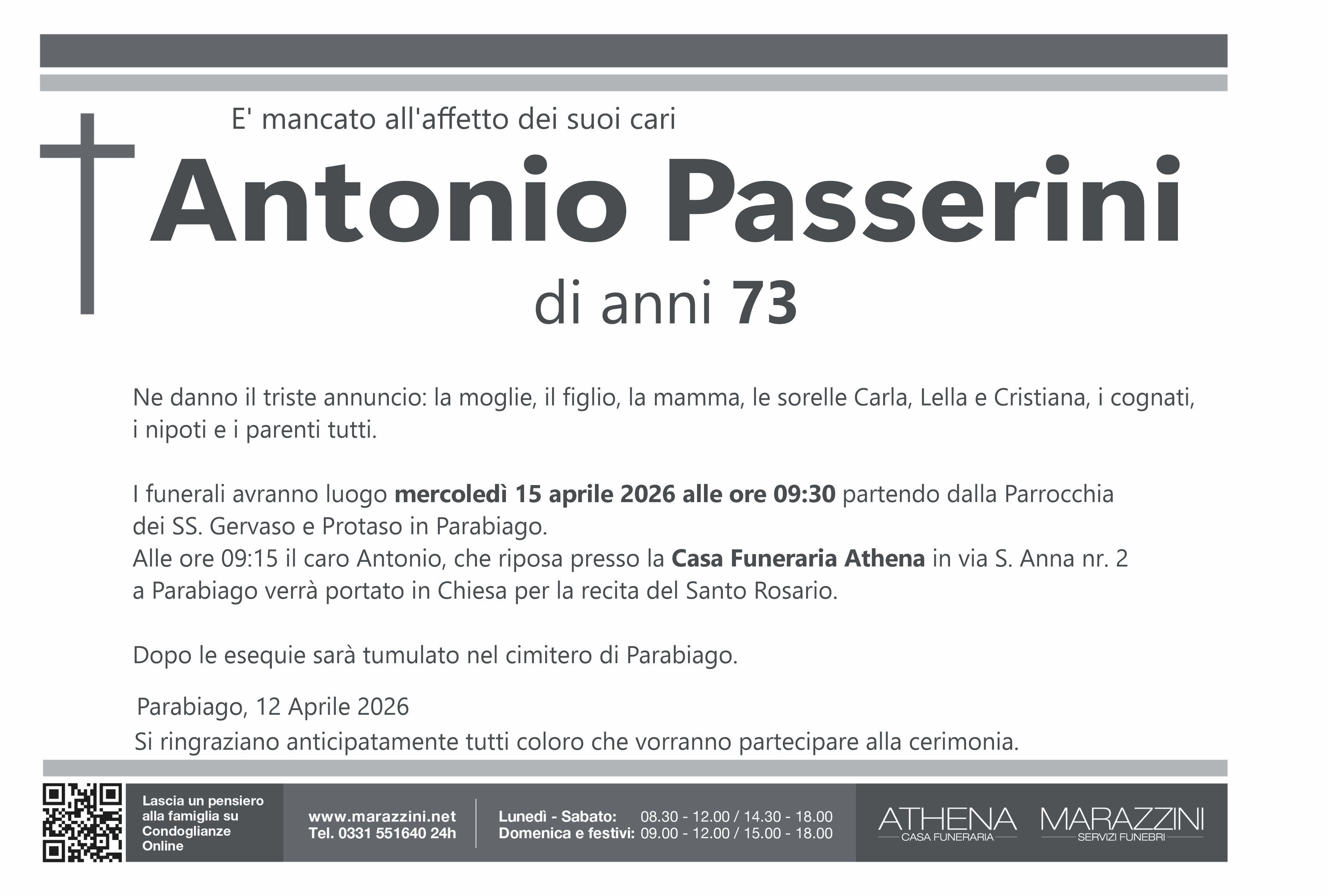 Home page \ I necrologi \ ANTONIO PASSERINI