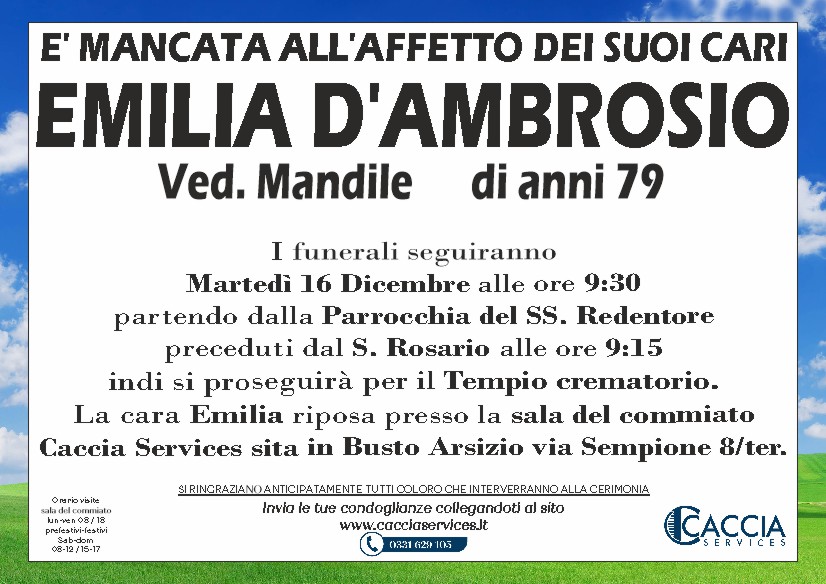 Home page \ I necrologi \ EMILIA D'AMBROSIO