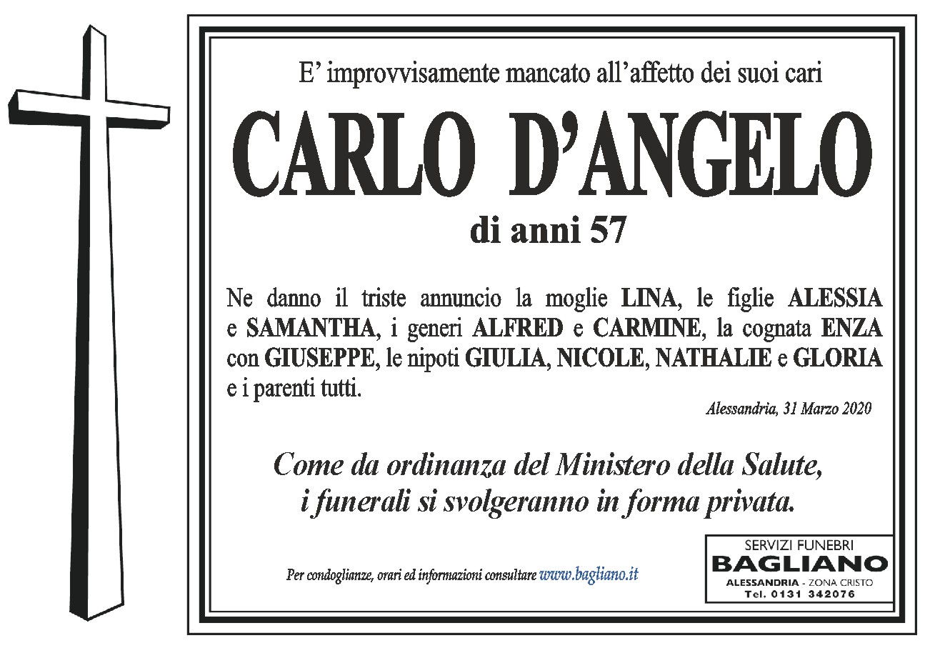 Come da ordinanza del Ministero della Salute, i funerali si svolgeranno in forma privata.