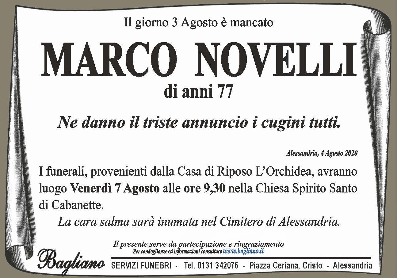 I funerali, provenienti dalla Casa di Riposo L'Orchidea, avranno luogo Venerdì 7 Agosto alle ore 9,30 nella Chiesa Spirito Santo di Cabanette.La cara salma sarà inumata nel Cimitero di Alessandria.