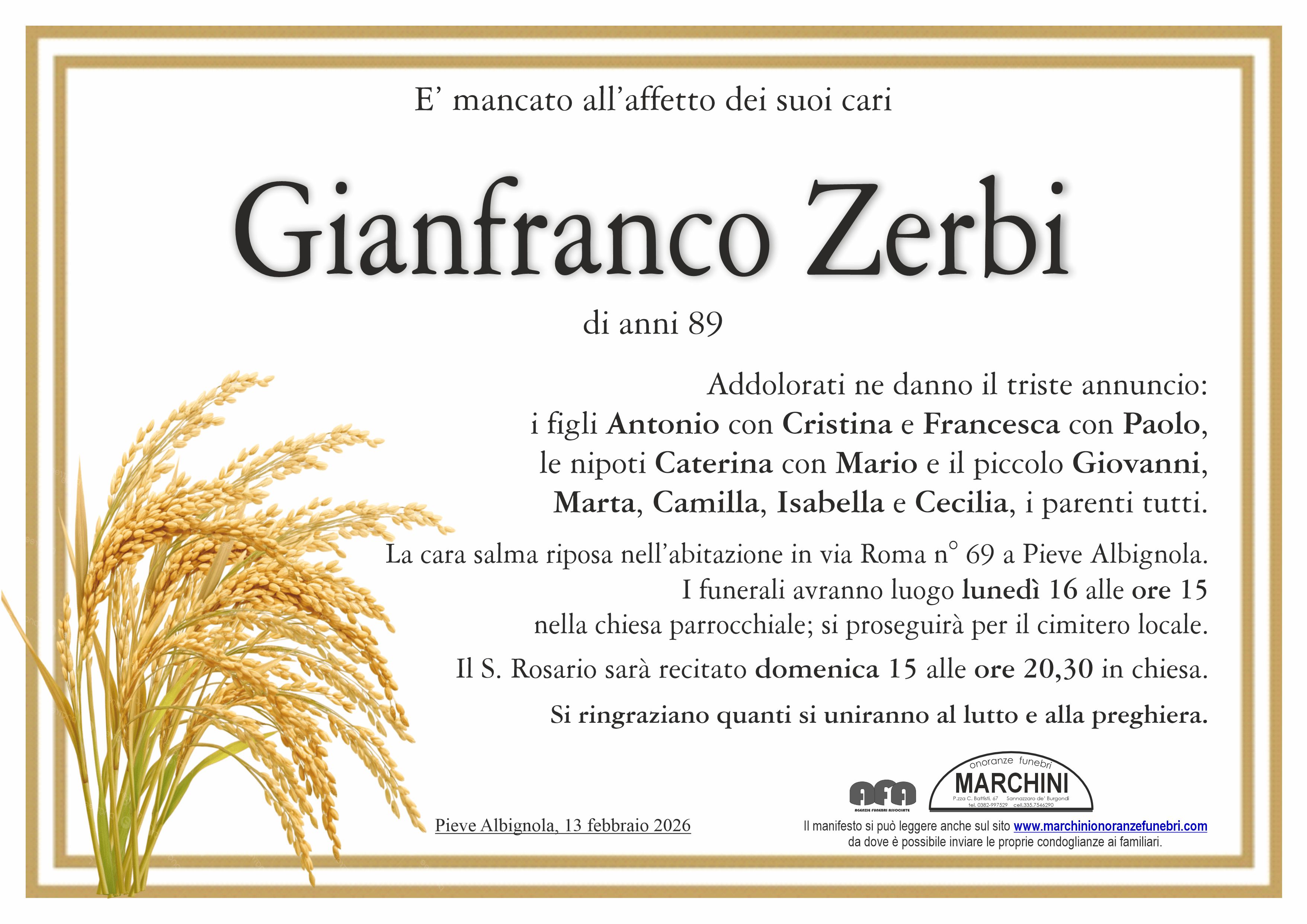 Home page \ I necrologi \ GIOVANNI ZERBI