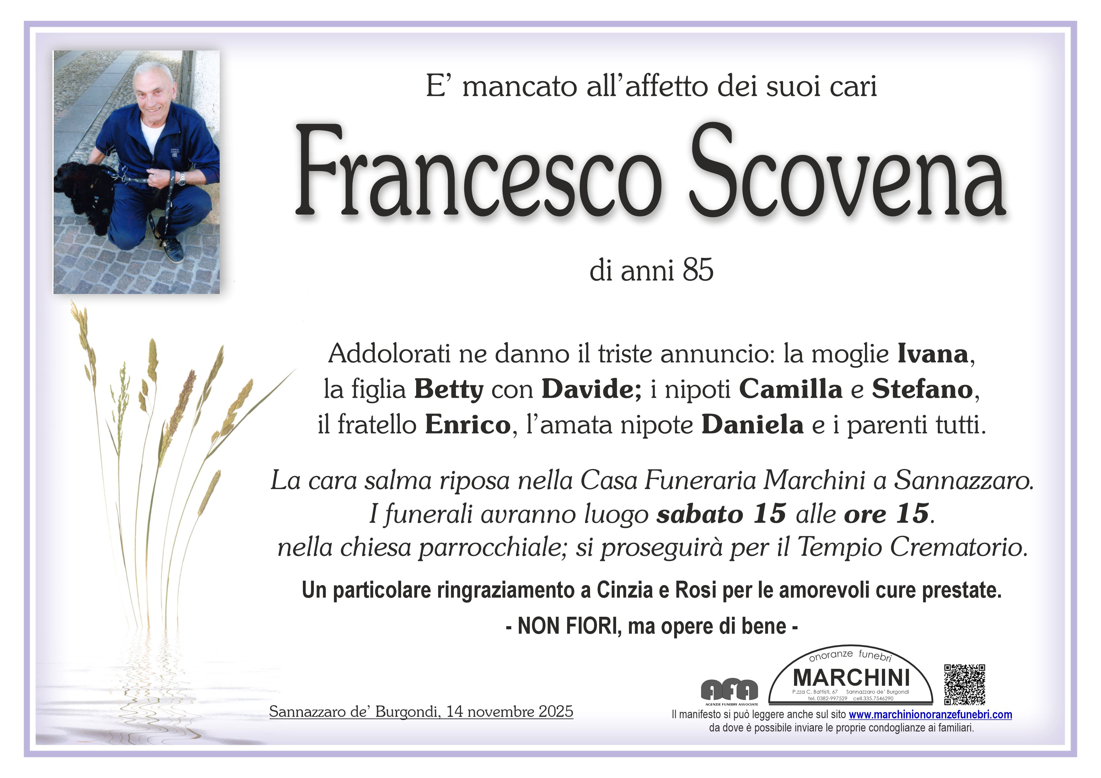 Home page \ I necrologi \ FRANCESCO SCOVENA