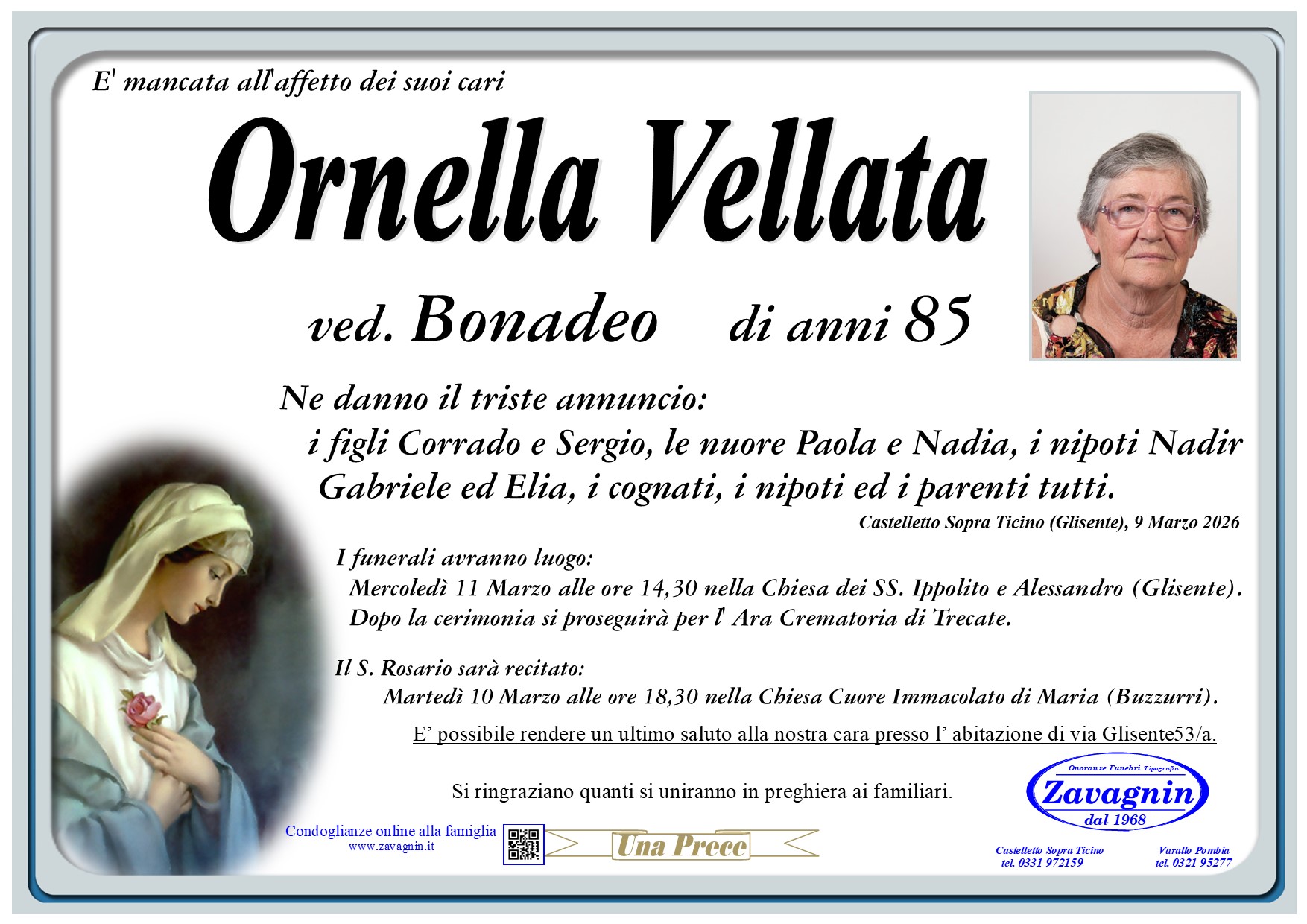 Home page \ I necrologi \ ORNELLA VELLATA