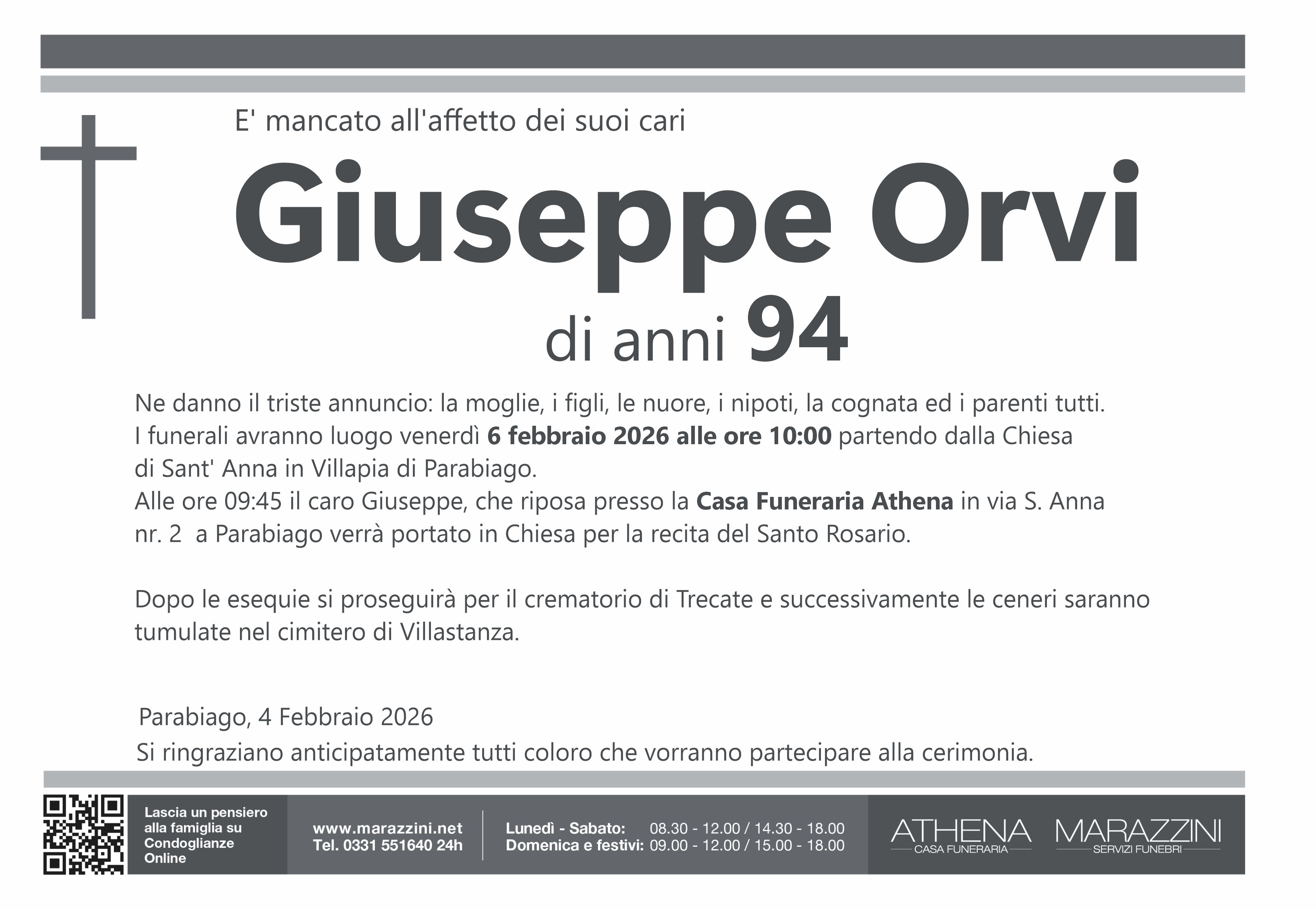 Home page \ I necrologi \ GIUSEPPE ORVI