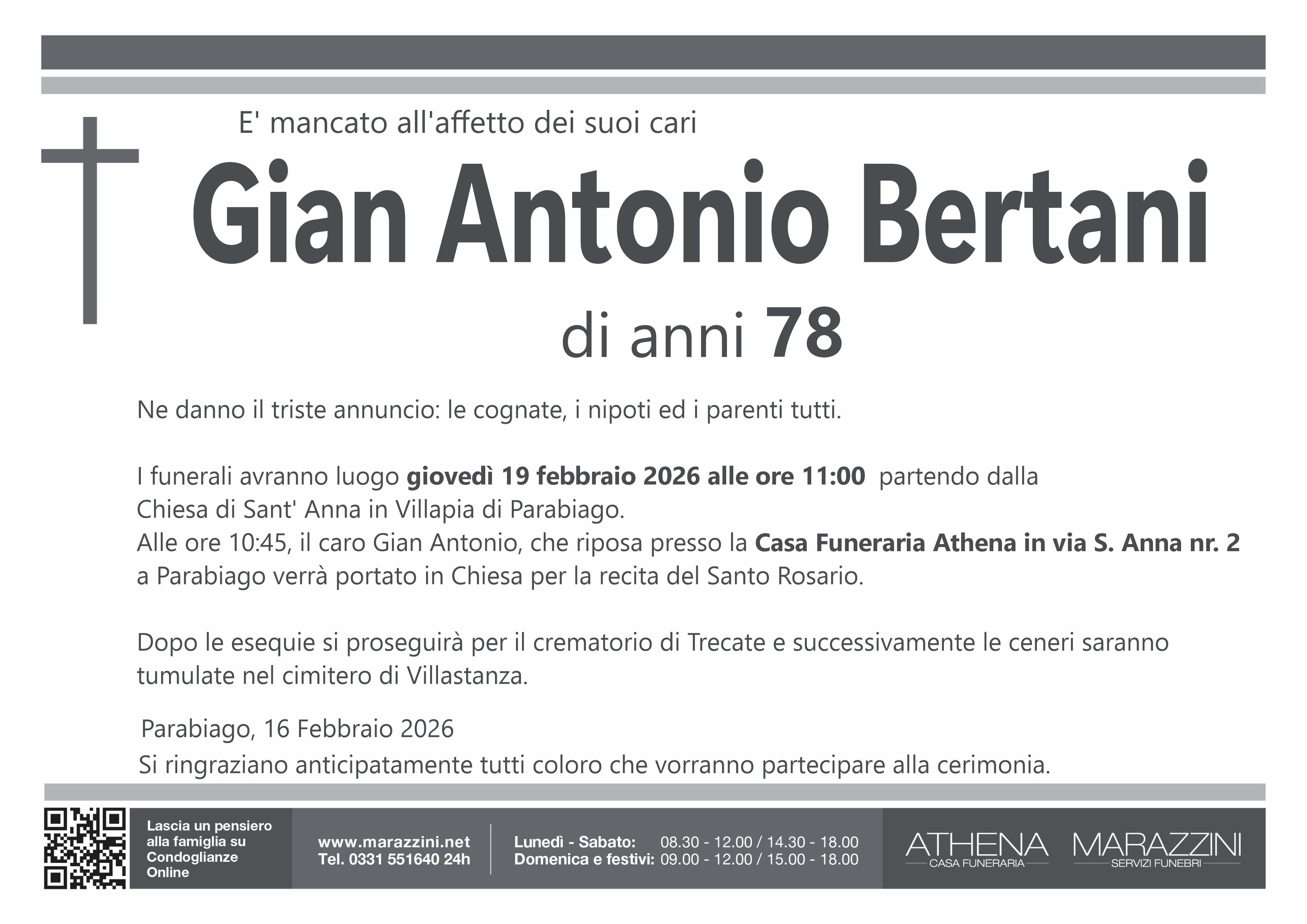 Home page \ I necrologi \ GIAN ANTONIO BERTANI