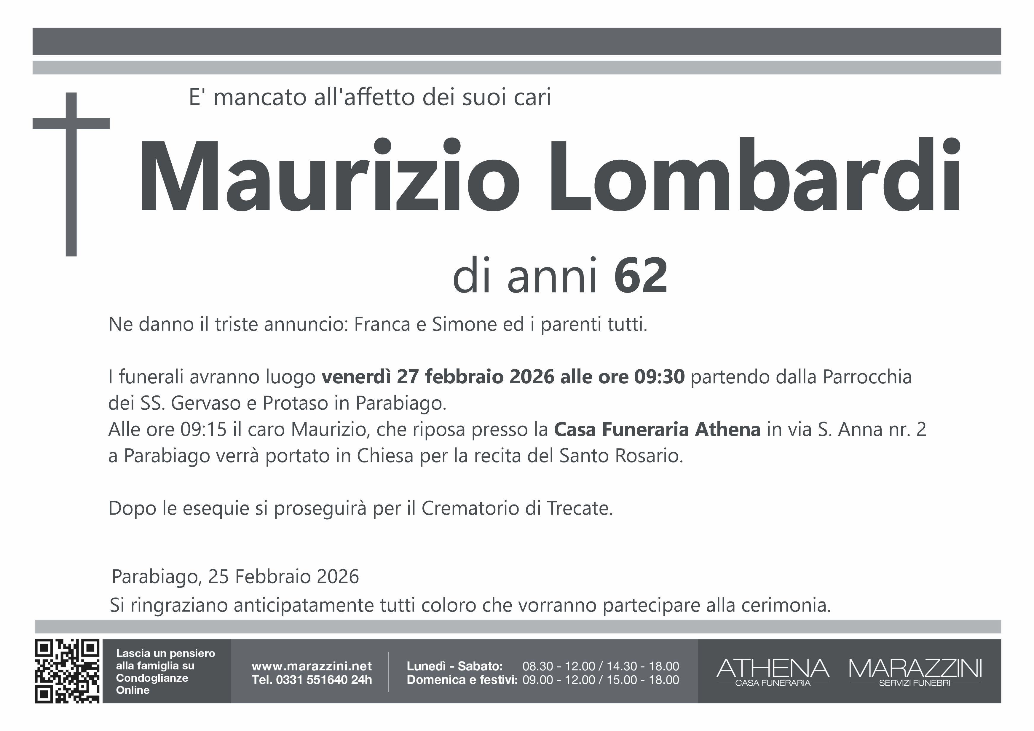 Home page \ I necrologi \ MAURIZIO LOMBARDI
