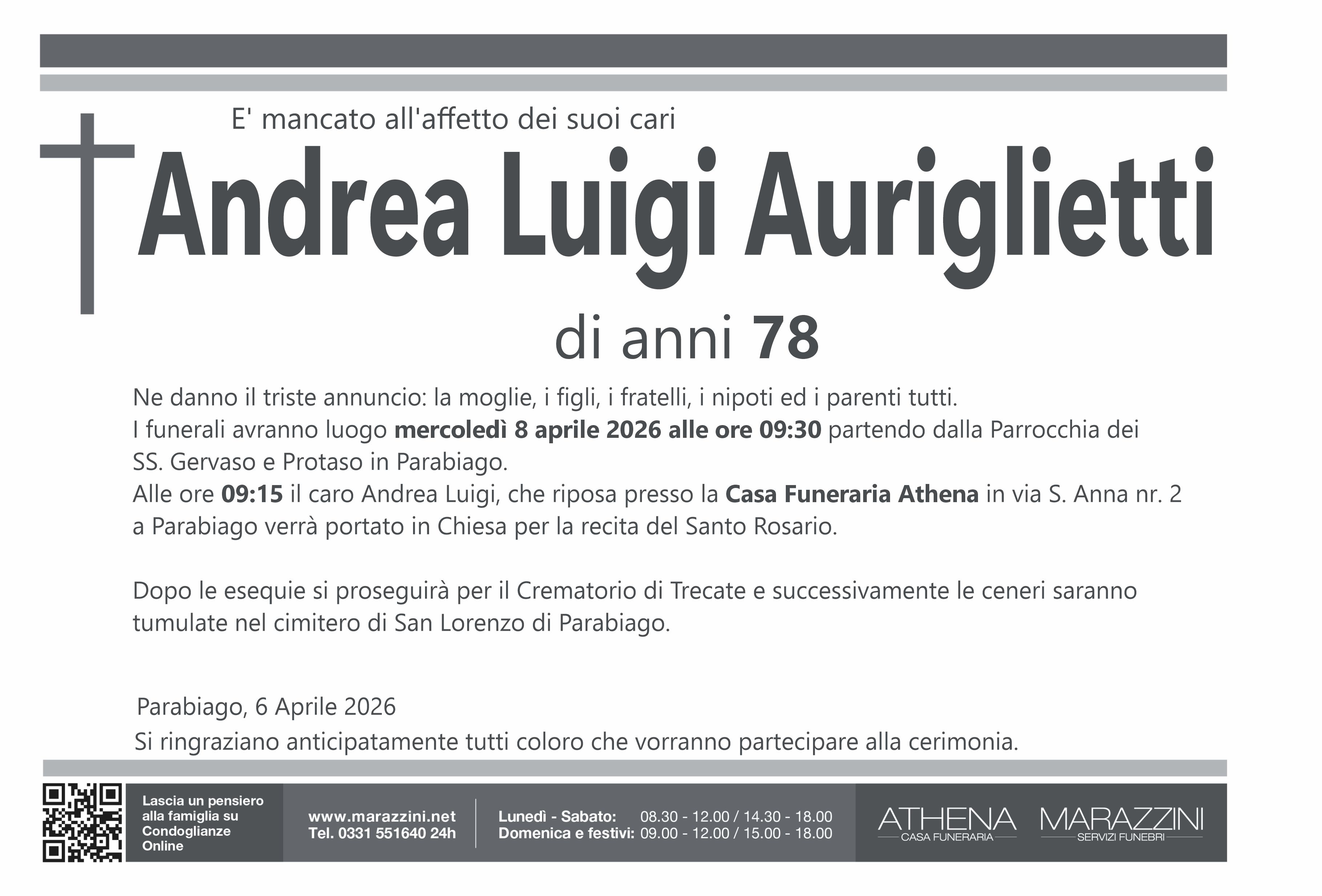 Home page \ I necrologi \ ANDREA LUIGI AURIGLIETTI