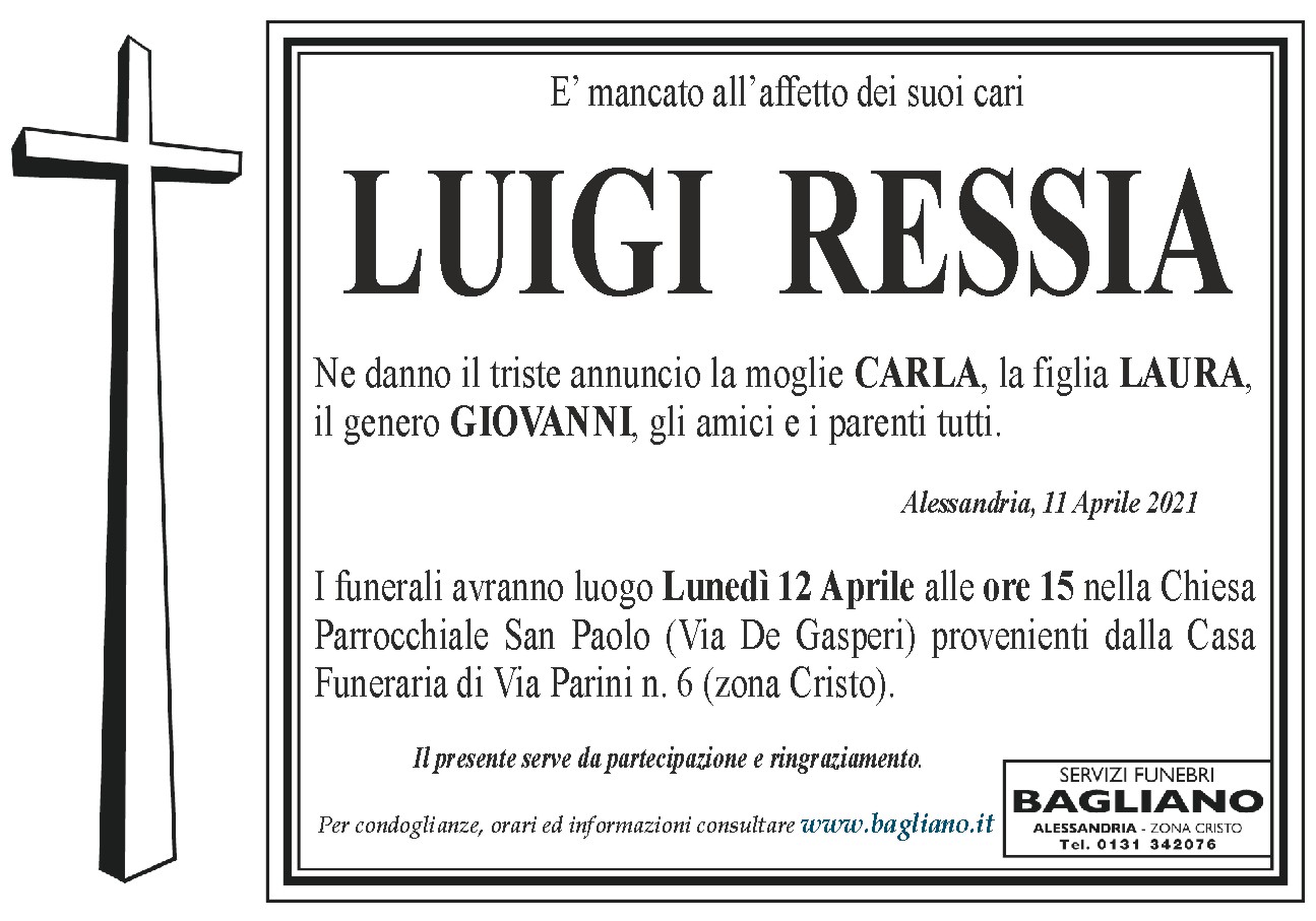 I funerali avranno luogo Lunedì 12 Aprile alle ore 15 nella Chiesa Parrocchiale San Paolo (Via De Gasperi) provenienti dalla Casa Funeraria di Via Parini n. 6 (zona Cristo).